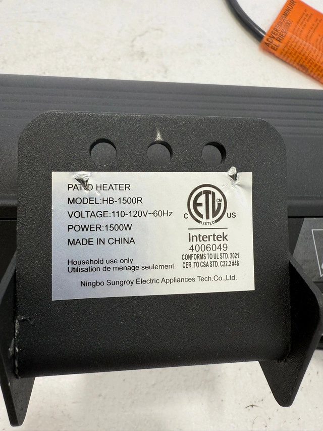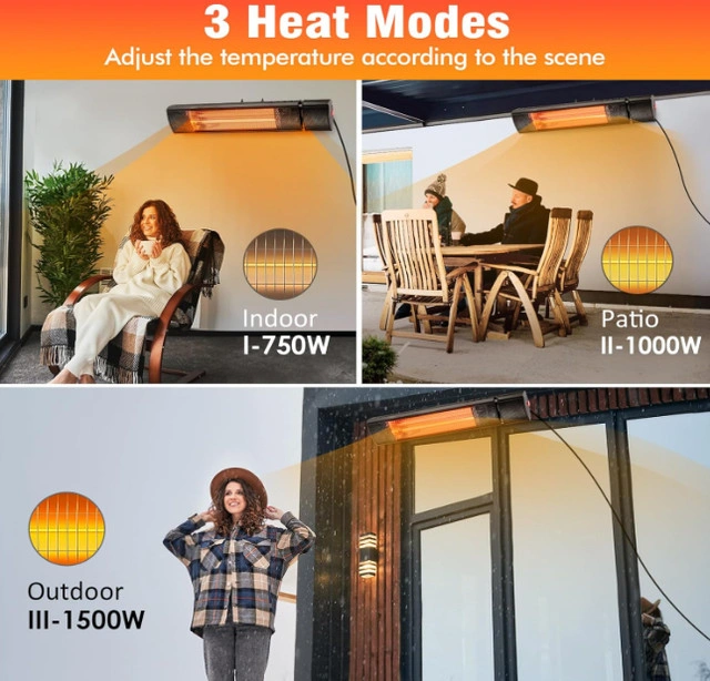 ZIPEAK 1500W Electric Patio Heater – Infrared, Remote, Wall Mounted | Open Box New. PLEASE NOTE: Final sale – no returns, no warranty. Check and test on pickup. Price: $100 Pickup: St. Catharines – North Condition: New in open box Retail Price: ~$160 + tax Model: ZIPEAK XD (Black) Power: 1500W – fast infrared heating Technology: Carbon tube infrared heater – silent & instant warmth 3 heating levels – 500W / 1000W / 1500W Remote control included Wall-mounted design – space-saving, safe & stable Weather-resistant build – great for outdoors Ideal for patio, deck, garage, backyard, workshops Includes mounting hardware, power cord & remote Actual photos available. Fully tested and clean. Available until sold.