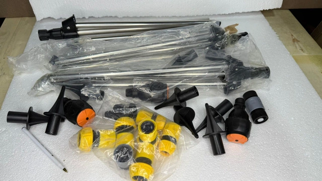 360 Rotating Garden Sprinkler Set of 3 on Adjustable Tripod Base. ⚠️ PLEASE NOTE: Final sale – no returns, no warranty. Check and test on pickup. Location: St. Catharines – North Condition: Brand new in packaging Product Highlights: 360° rotating sprinklers – set of 3 units Adjustable tripod for flexible height and coverage Perfect for lawns, patios, greenhouses, and flowerbeds Strong and durable construction Simple to set up and use ✅ Tested and clean. Cash or e-transfer accepted. ✅ Cross-posted on other platforms. Available until sold. ✅