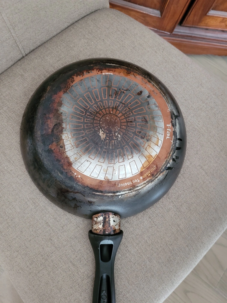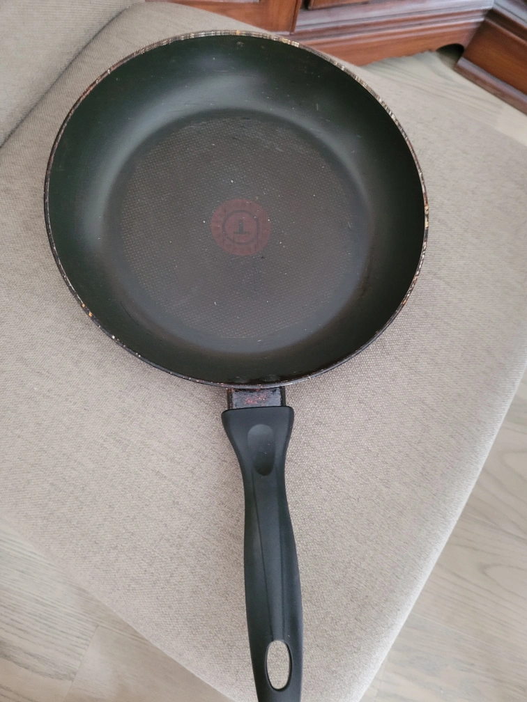 Teal 9 inch frying pan in good condition. some oil stains but thoroughly washed and cleaned. Free for all.