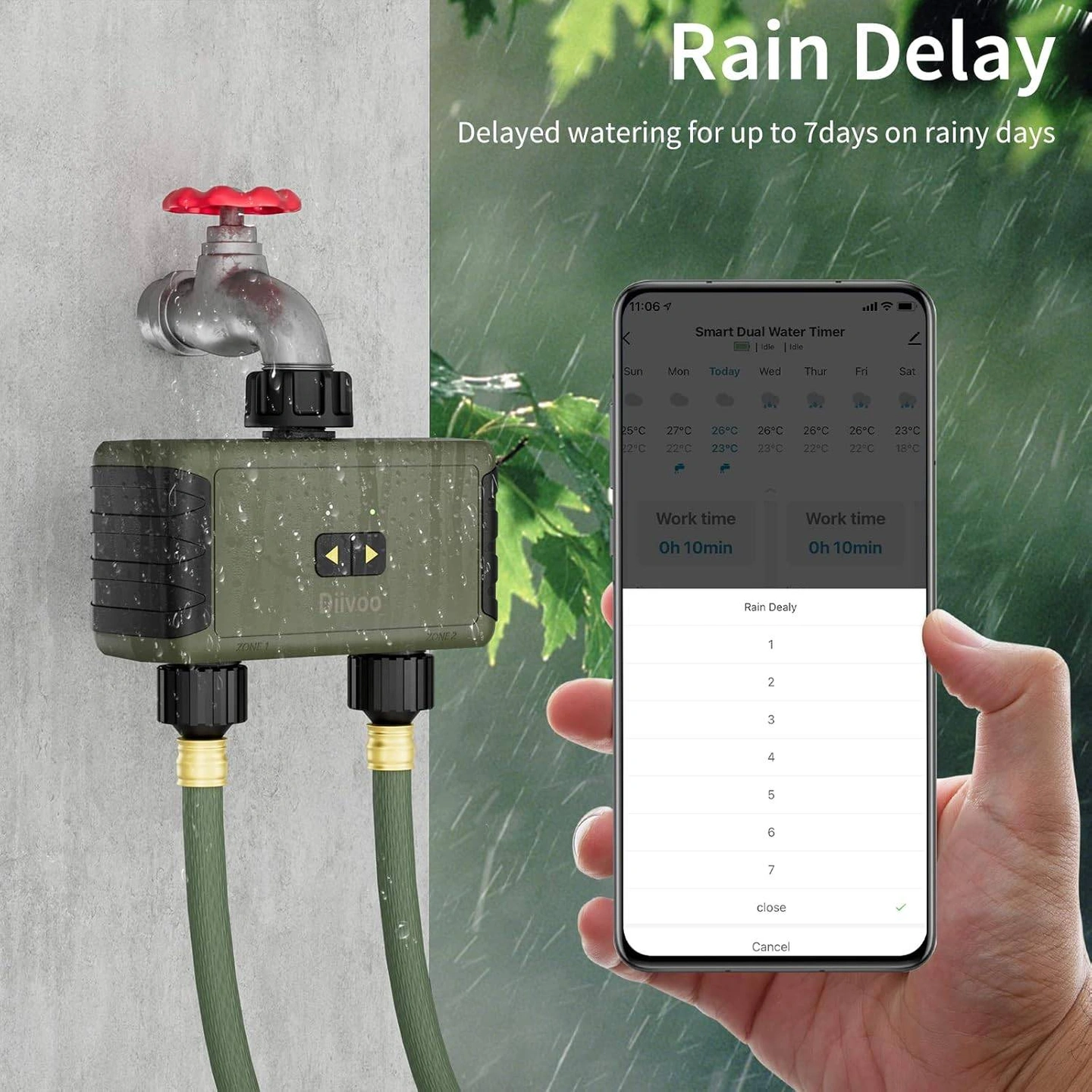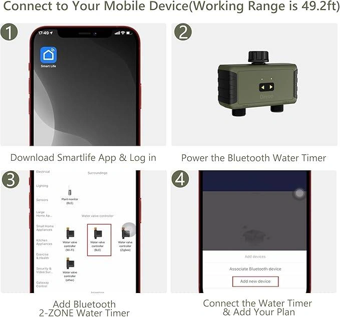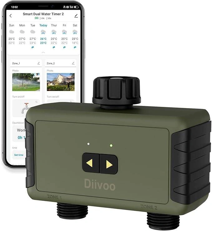 Bluetooth Sprinkler Timer 2 Zone, Diivoo Smart Water Timer for Garden Hose Up to 40 Separate Programmable Schedules, Rain Delay, Manual Watering, Working Range is 49.2ft, for Yard Lawn, Pool Filling