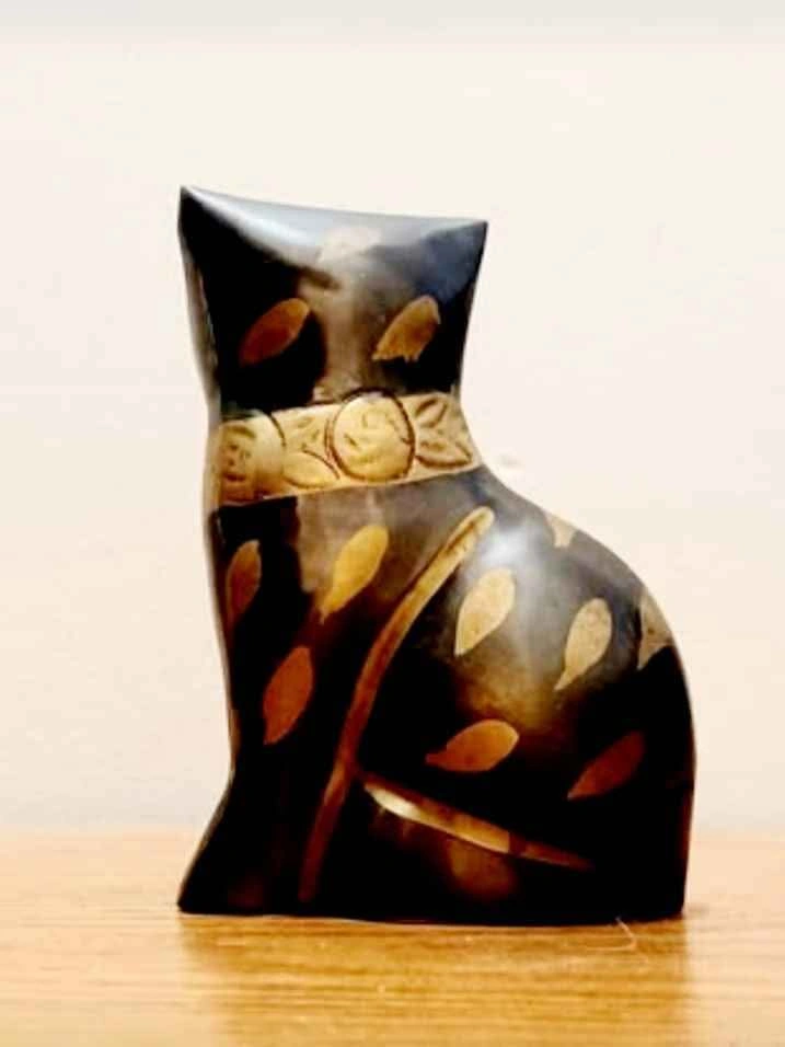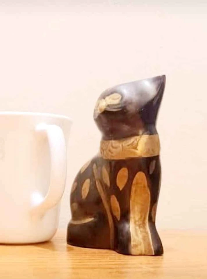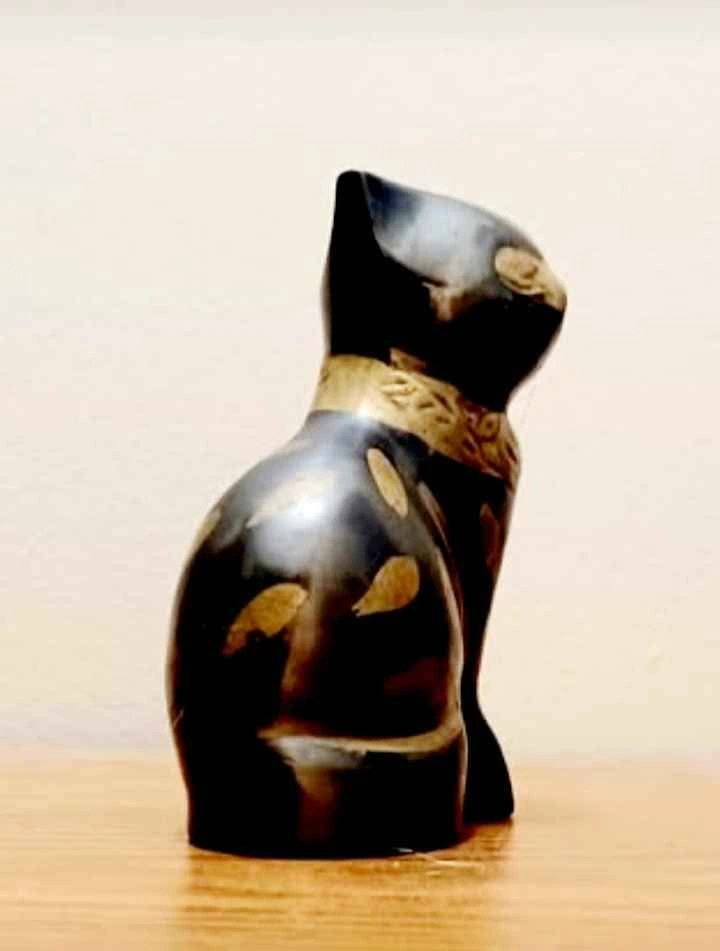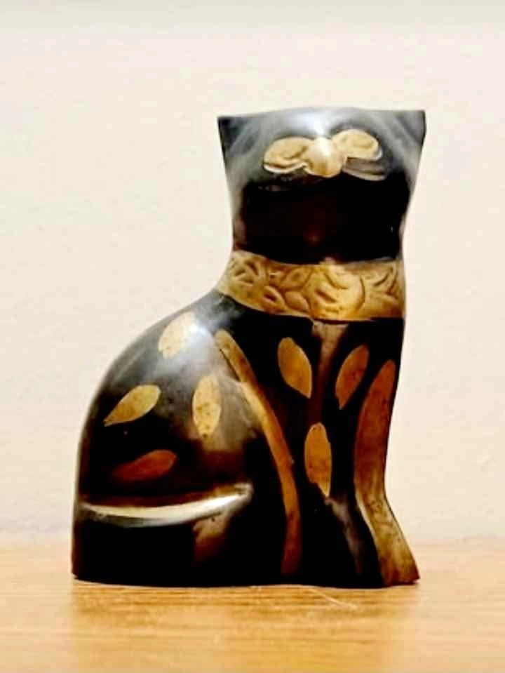 Vintage, Hand Crafted, Ebonized Etched Brass Cat Sculpture Made in India. Mug for Size Reference. Elephant & Crane are available. Please check out my other rare items!