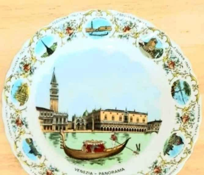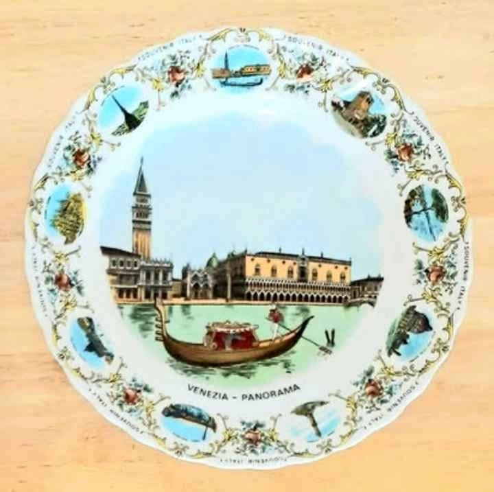 Vintage, Mid Century Venezia Italy Panorama Schirnding Bavarian Porcelain Germany Wall Plate. Panoramic view of Central Venice, Italy, featuring the Iconic Piazza San Marco and a Gondola & surrounding vignettes of other Landmarks. Mint Condition,no chips or cracks Please check out my other posts
