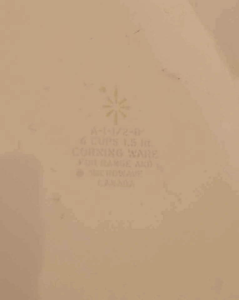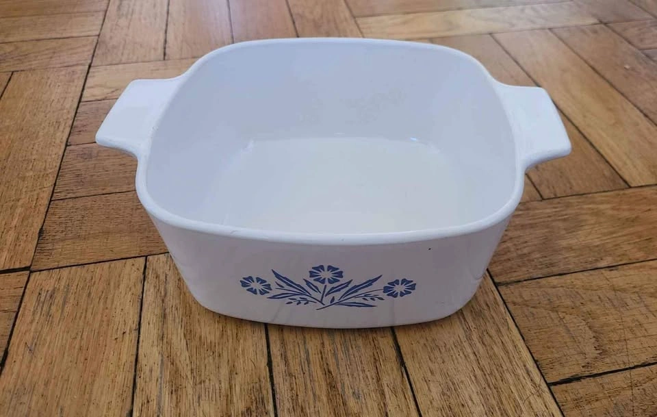 Vintage Corning Ware Dishes with no cracks or chips. Comes with one lid but has slight chip on side. Back stamp indicates dishes were made before 1998.