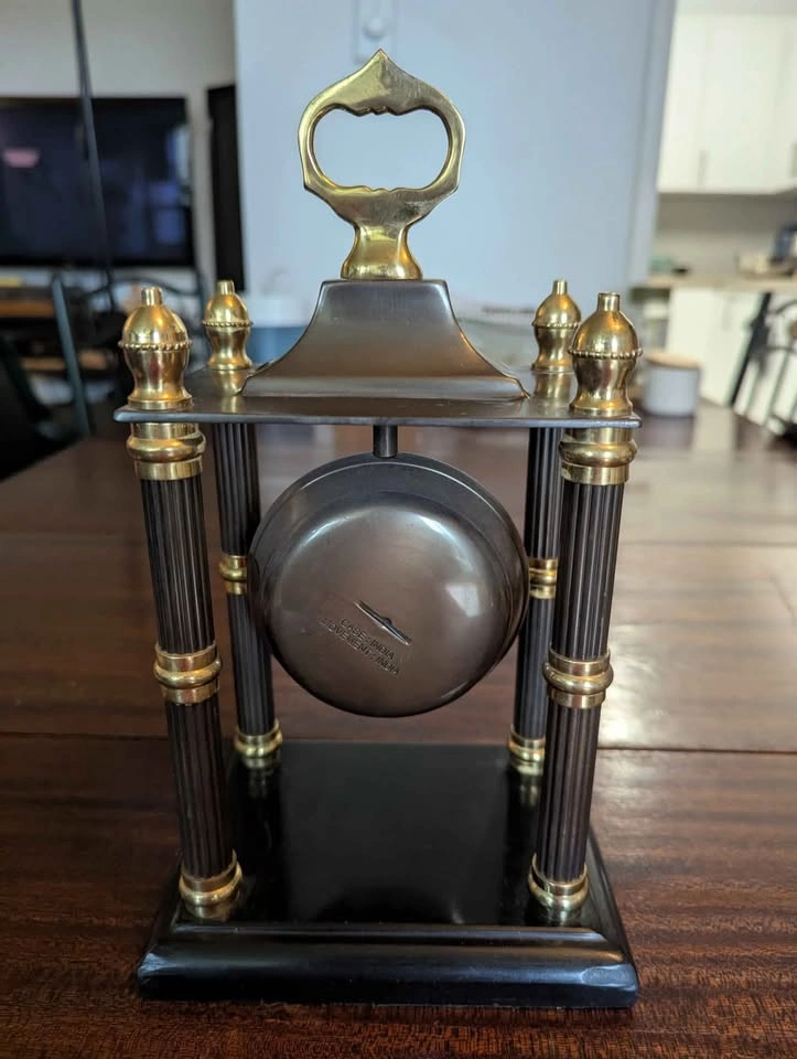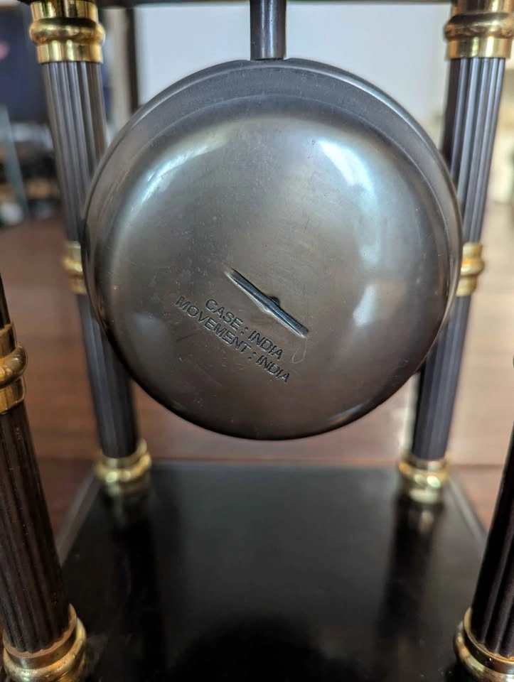 Add a touch of classic elegance to your space with the Bombay Co. India Quartz Analog Mantel/Desk Clock. Crafted in India, this clock features a rich brown finish with exquisite gold accents, complemented by Roman numerals on its face for a sophisticated touch. Its brass finish enhances the clock's timeless appeal, making it a versatile piece suitable for any room. This desk clock measures approx 30 cms in height and 15.25 cms in width, with a weight of 5 pounds, ensuring it stands firmly on any surface. Powered by a battery, the quartz movement guarantees precise timekeeping, making this clock both a decorative and functional addition to your home or office.