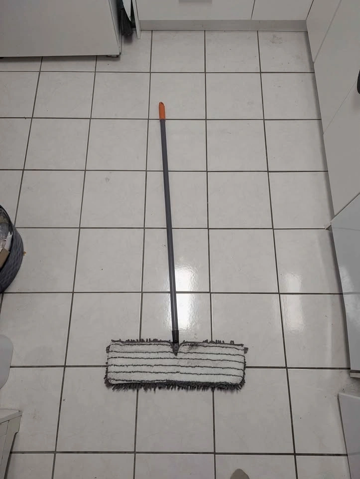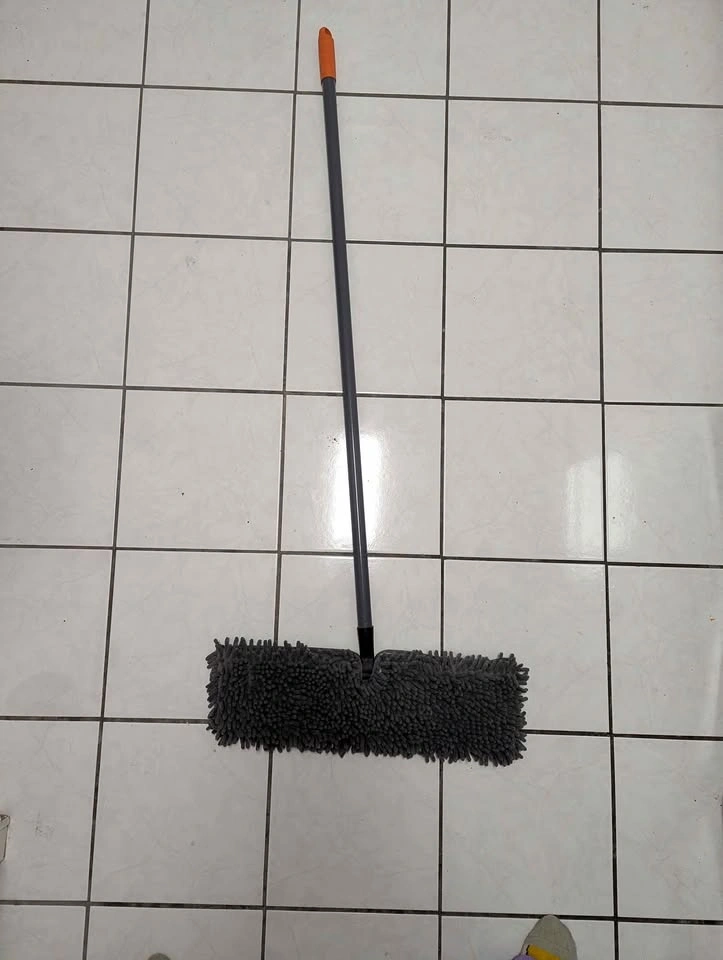 HDX Giant 22-inch Microfiber Wet-Dry Flip Mop. Dual-sided design: One side features a fluffy gray microfiber for dry sweeping and dusting, while the other side is designed for wet mopping and scrubbing. The 22-inch head makes it efficient for cleaning large hard floor surfaces like hardwood, tile, and laminate. The microfiber pad is machine washable, making it an eco-friendly and cost-effective cleaning solution. The handle includes a hanging hole for convenient storage.