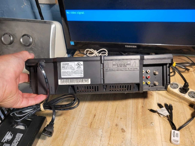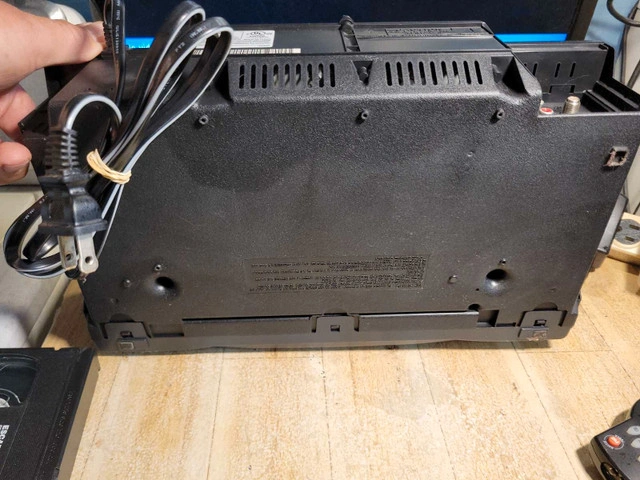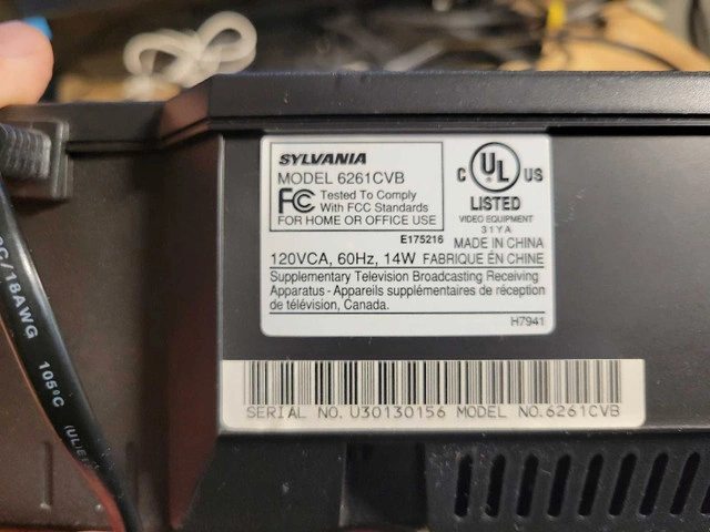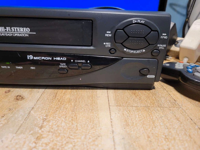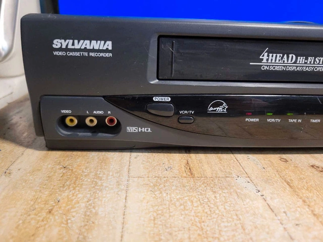 Comes with Cogeco universal remote. Delve into the world of vintage entertainment with the Sylvania 6261 4 Head 19 Micron VCR. This classic piece of electronics offers a nostalgic journey through your cherished VHS collections. With its four heads, it ensures a clear and stable playback experience, preserving the quality of your tapes. Crafted with precision, this model 62161 CVB from SYLVANIA is a testament to the enduring legacy of analog technology. Made in China, it blends functionality with the time-honoured charm of physical media, making it a valuable addition to any collector's array of vintage audio and video equipment.