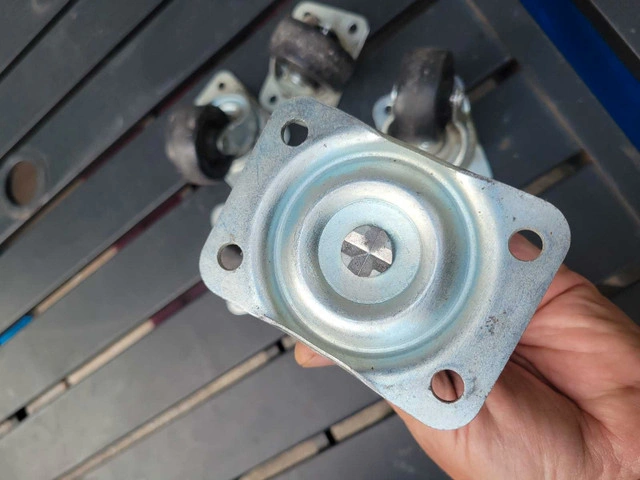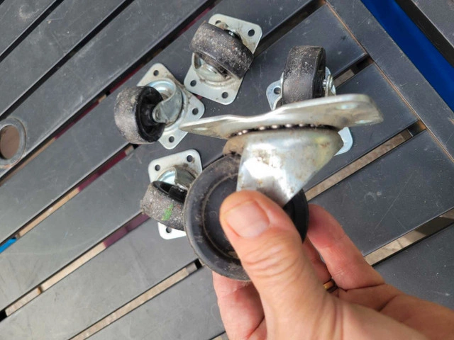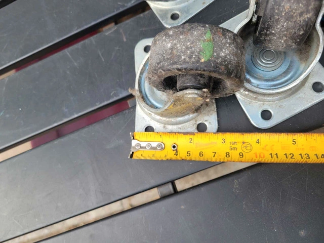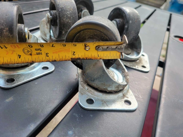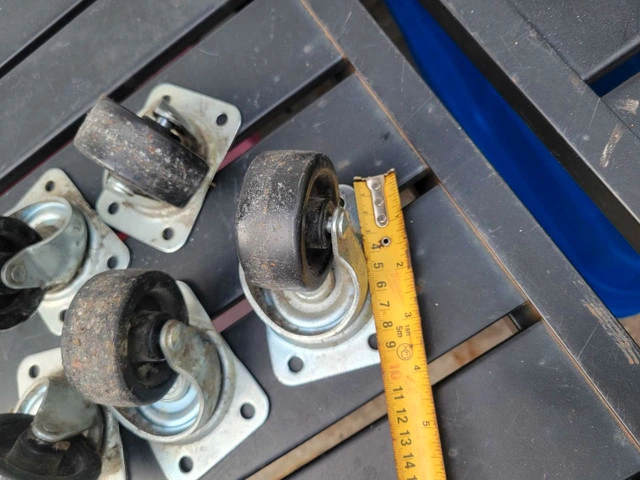 These casters are in good shape, 4 bolt or screw base measurements in pics