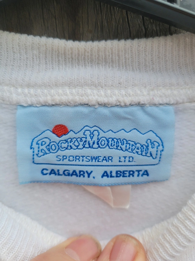 This classic sweatshirt made by Rocky Mountain Sportswear of Calgary AB has colorful and vibrant graphics