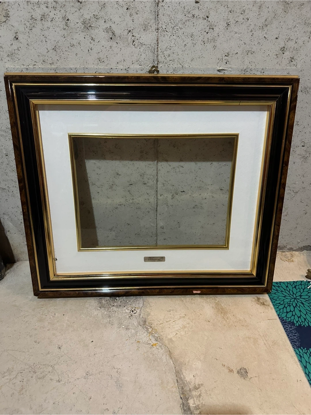 A lovely vintage picture frame, perfect for adding a touch of elegance to your space! The frame features a unique wood-like pattern with gold accents.