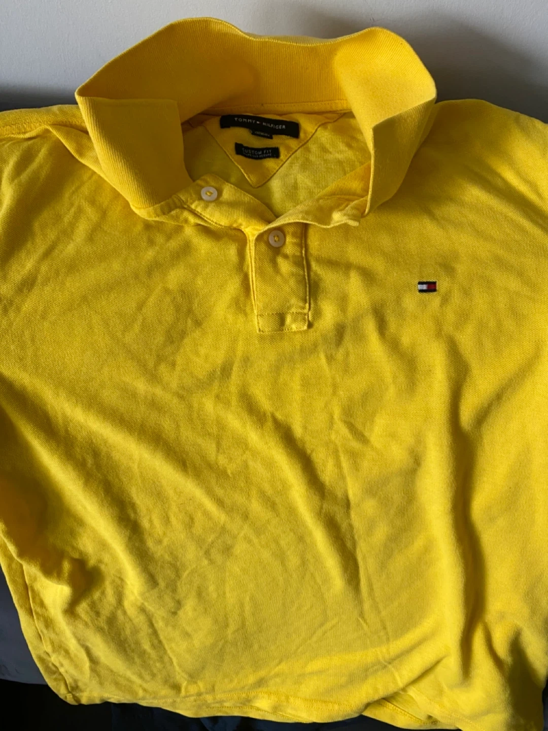 Here's a bright yellow Tommy Hilfiger polo shirt! It's in great shape and ready for a new home. Perfect for adding a pop of colour to your wardrobe