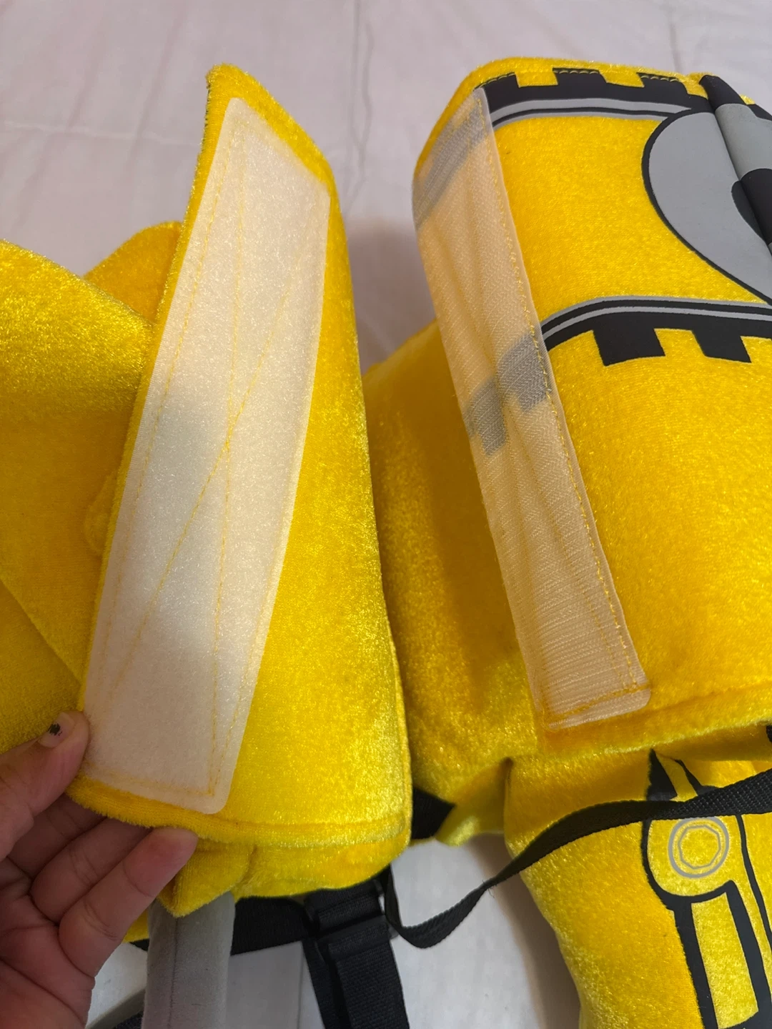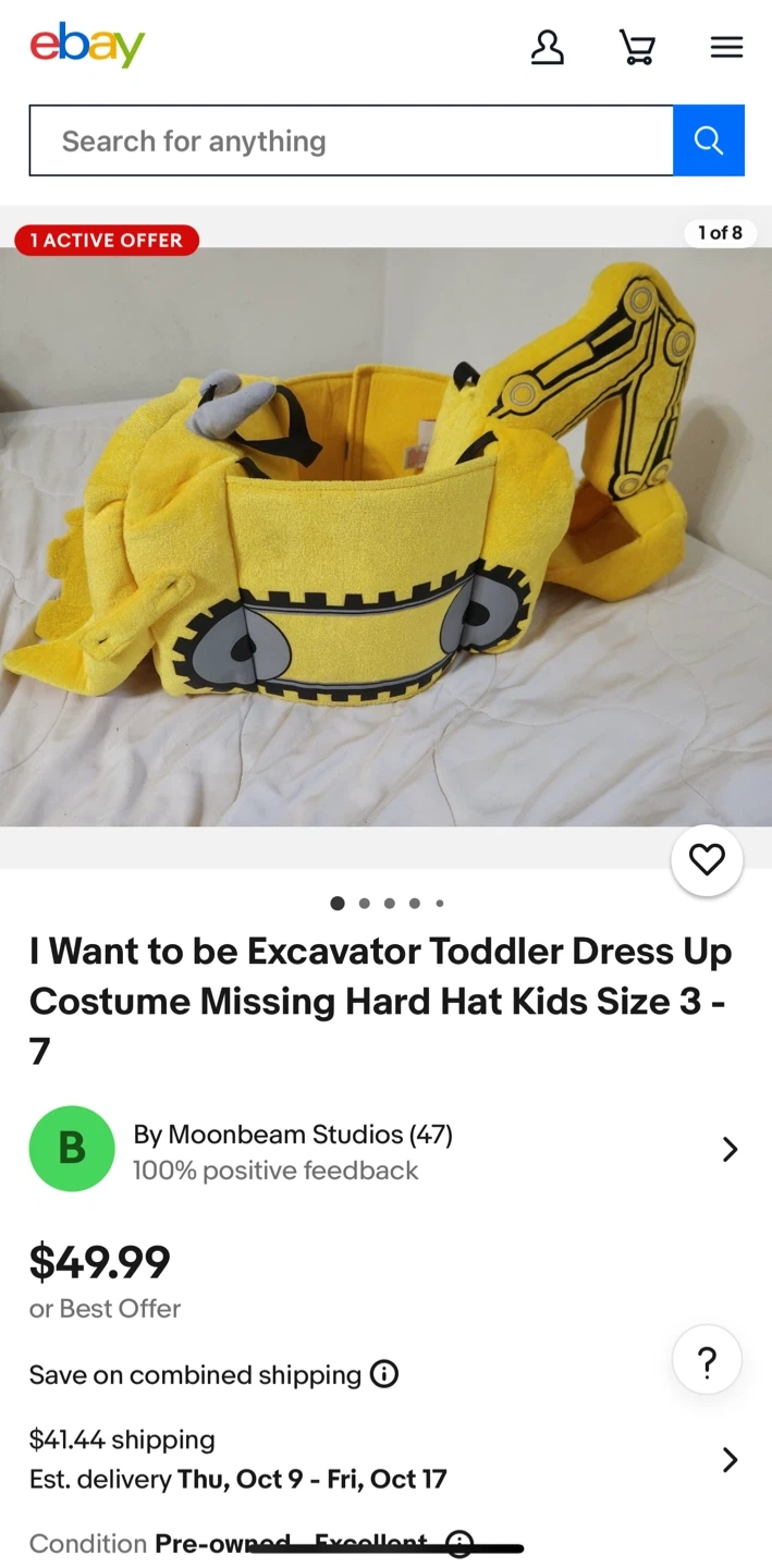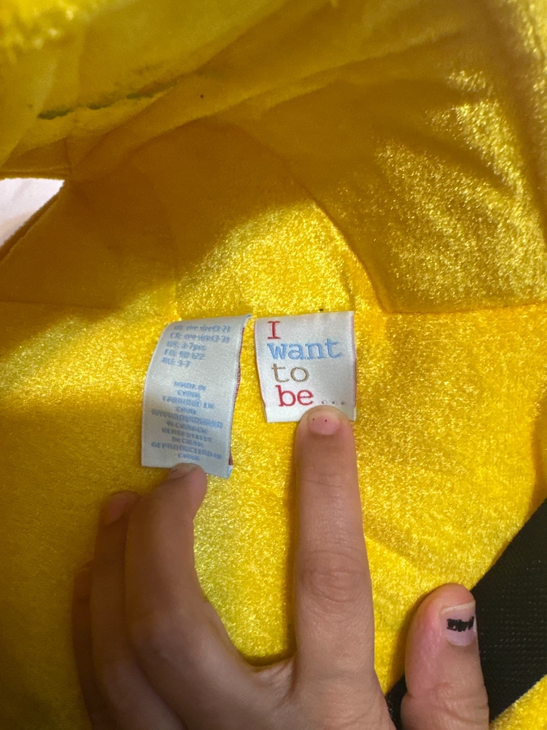 This adorable 'I Want To Be' excavator costume is perfect for dress-up or Halloween. It's in great condition. It is described as a bulldozer truck costume.