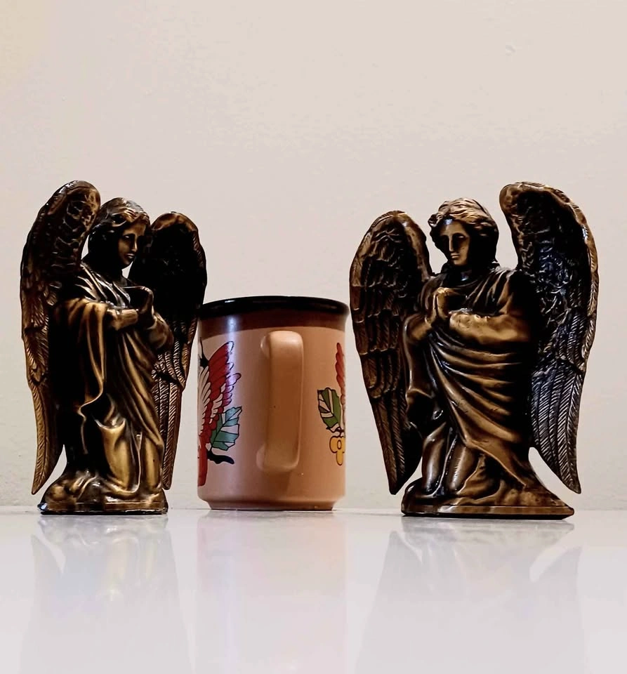 Vtg. , Pair of Cherub Statuette Heavy Solid Bronze Decorative, Household Mug For Size Reference Mint Condition Please check out my other posts