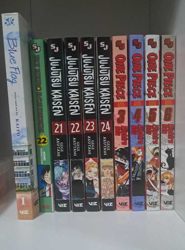 1. Blue Flag Manga - English - Volume 1 •Like New, No Damages •I've only read it once so its in really good condition. 2. My Hero Academia (MHA) / Boku No Hero Academia (BNHA) Manga - English - Volume 22 •Like New, No Damages •I've only read it once or twice so its in good condition. 3. *CURRENTLY RESERVED* Jujutsu Kaisen (JJK) Manga - English - Volumes 21, 22, 23, and 24 •New, No Damages •I haven't read these so they are in good condition. I bought them in the hopes of getting into the series after watching the anime but I didn't. 4. One Peace Manga - English - Volumes 3, 4, 5, and 6 •Like New, No Damages •I've had these for a bit but haven't read them so they are in good condition. However, volume 3 has light yellowing on the outside. $12 for blue flag, $10 for jjk and one peace, $8 for mha I'm open to negotiations on the price! Cash or E-transfer/PayPal :)