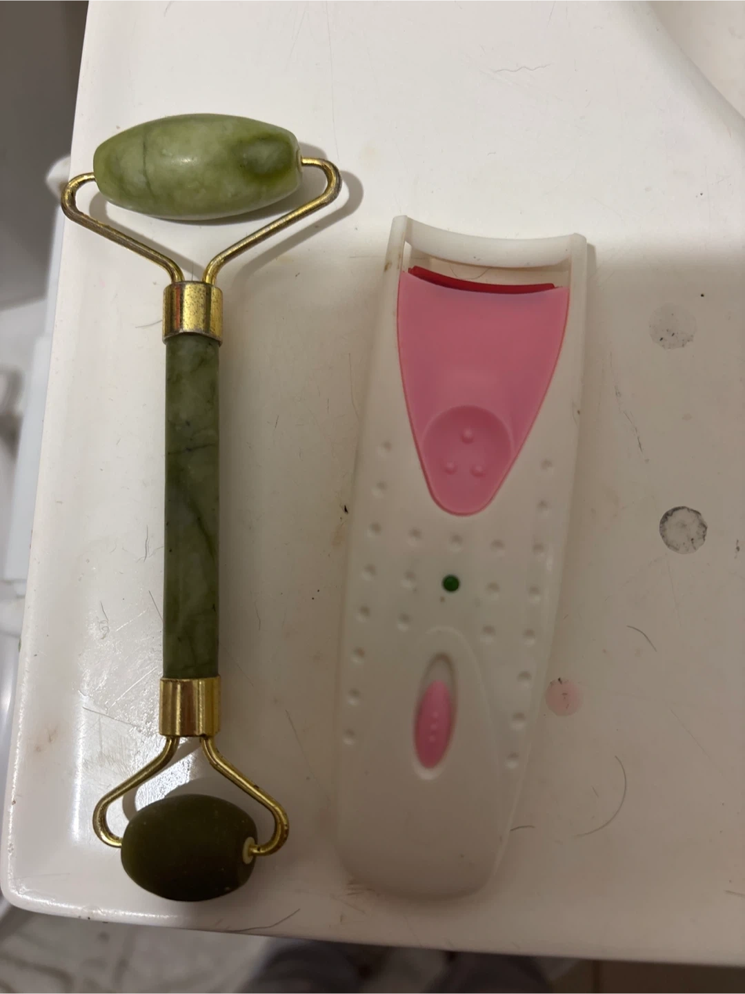 Selling a jade facial roller and an eyelash curler. Both items are in good condition and ready for a new home! Perfect for your skincare and beauty routine