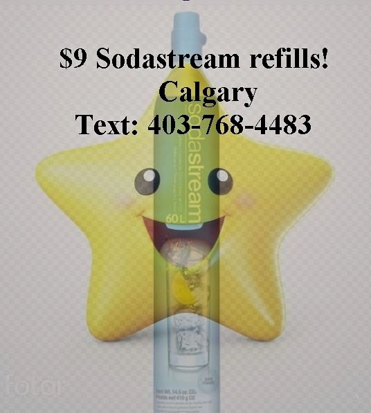 Text for quick service [hidden information], or send a facebook message to us on here with your info. Pickups on request Mon-Fri from 5 - 6 PM at 8835 Mcleod Trail S.W. Tim Hortons Parking Lot. We accept Cash and Etransfer. Just let us know how many bottles you'd like to exchange, and what area of Calgary you are in. We can arrange a convenient time and place to meet. If you are not available during delivery times, you can leave your empty bottles out somewhere for pickup. We swap/fill all Sodastream, Ninja Thirsti, Ultima Cosa, and aquarium/keg bottles. We also fill 5, 10, and 20 lb CO2 tanks. 5Lb $35, 10 lb $50, 20lb $85 (24 hours needed) Need an extra bottle? We have full sodastream compatible bottles (the screw in bottles, not the pink quick release) for $25 (compare to $42 in stores). It's always a good idea to have a spare tank handy! Check out our website at www.sodastar.info Text now [hidden information], or send a facebook message to us here with your info