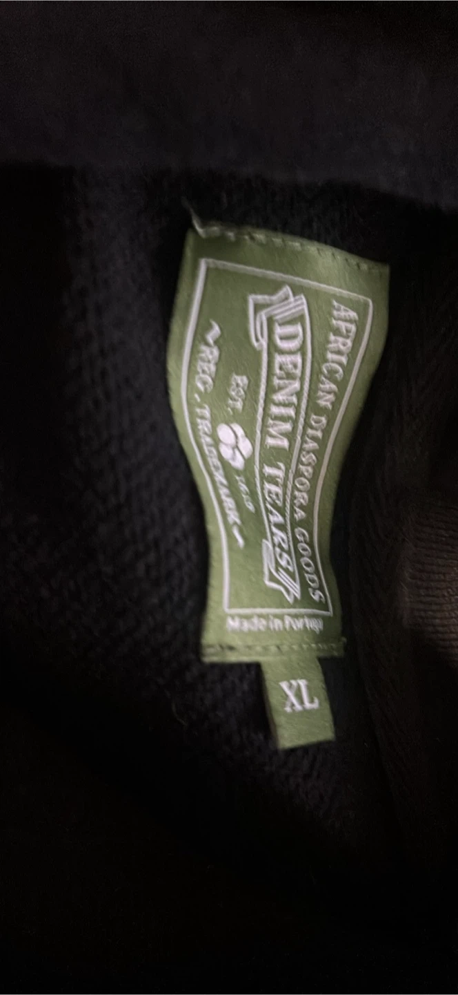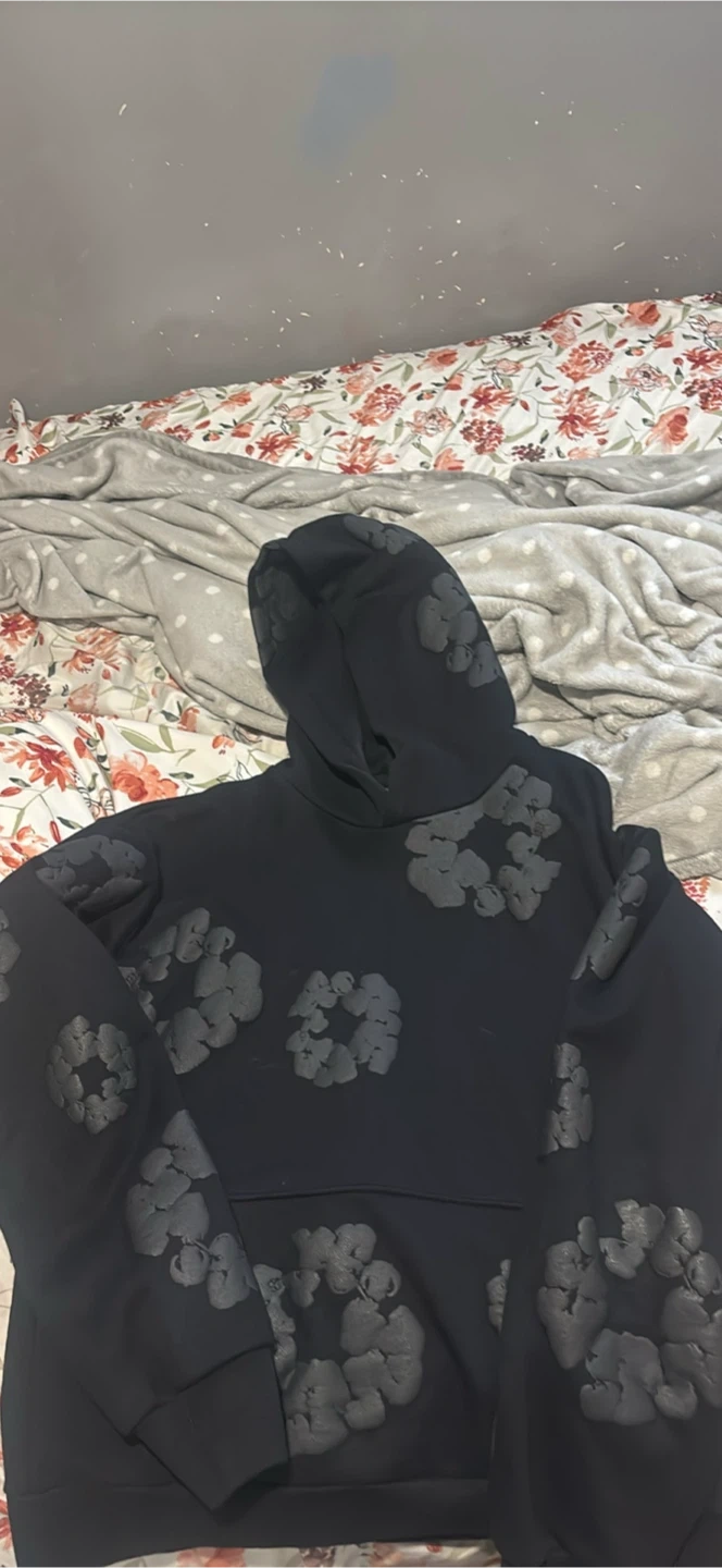 Selling a Denim Tears hoodie in size XL. It's black with a floral design. It's in great condition and ready for a new home!