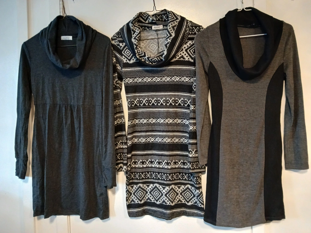 *$5.00 cash each. *Cash and pick up ONLY at location shown on ad. Selling three tunics/dresses. - Spool tunic: Size S in grey. - Ardene tunic: Size XS with a black and white pattern - Bluheaven tunic: Size S in grey, made in Mexico. From a smoke-free, pet-free home.