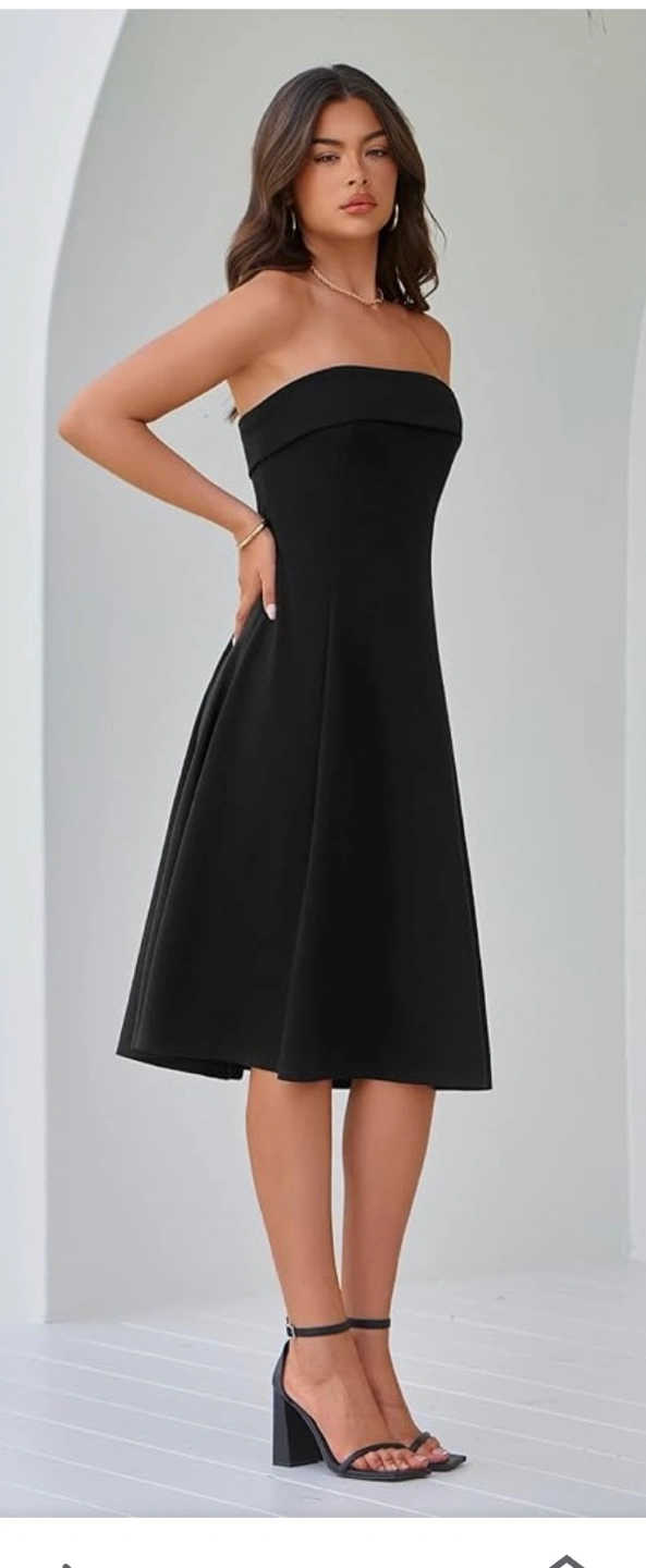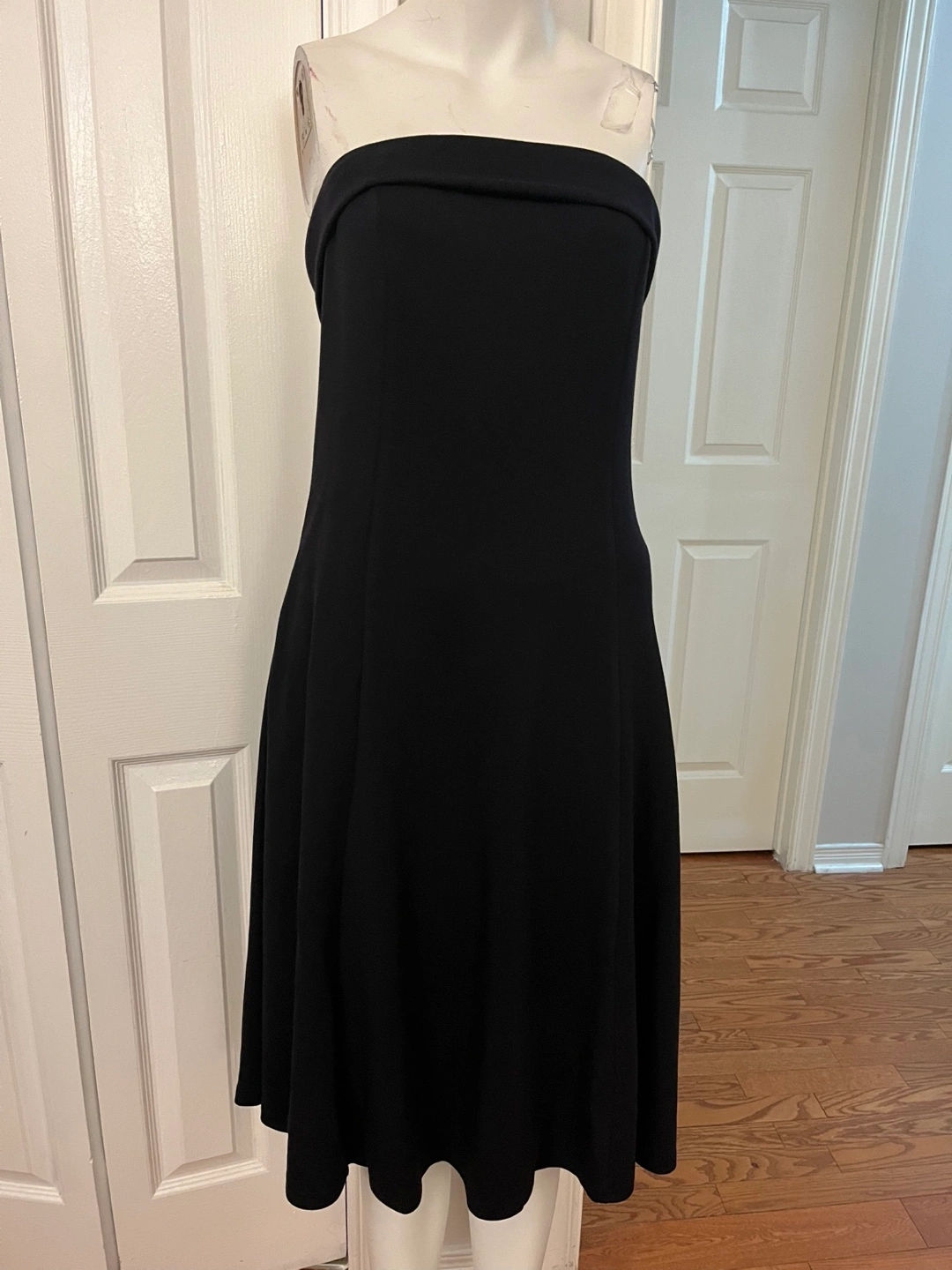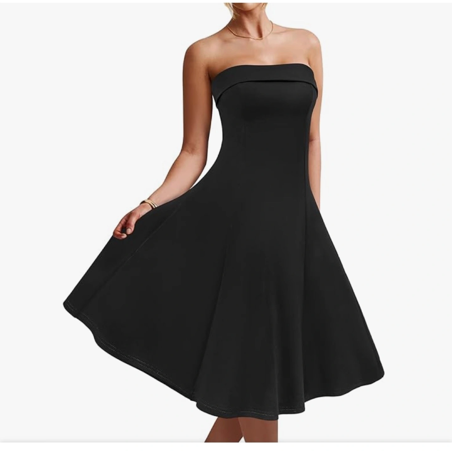 A Newshows black strapless dress in size L. It's a stylish and elegant piece that's perfect for a night out or a special occasion! The dress is in brand new and ready for a new home