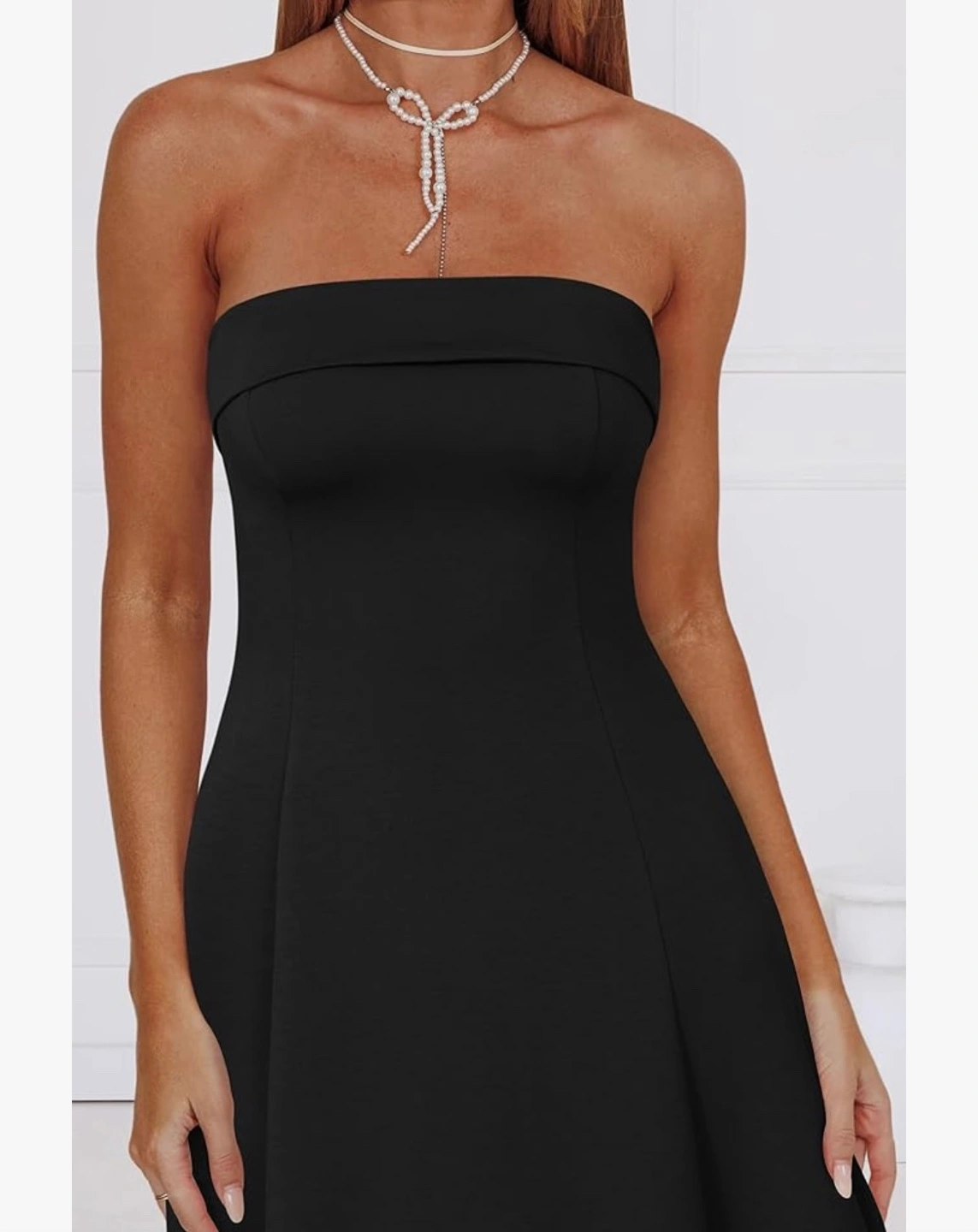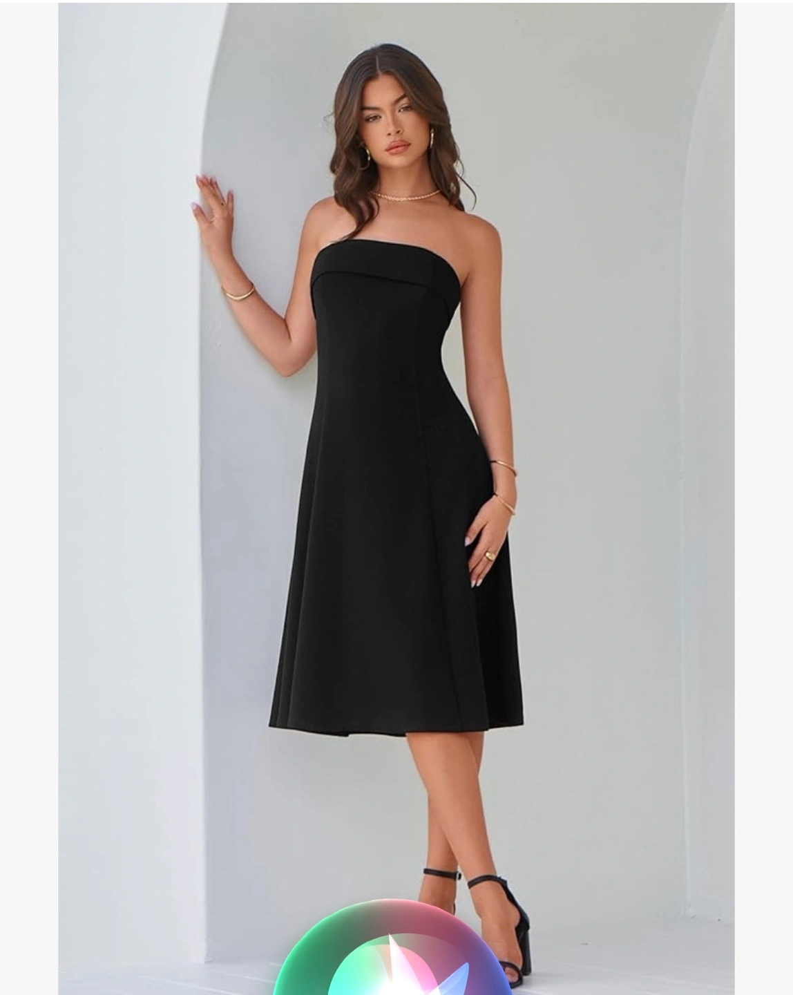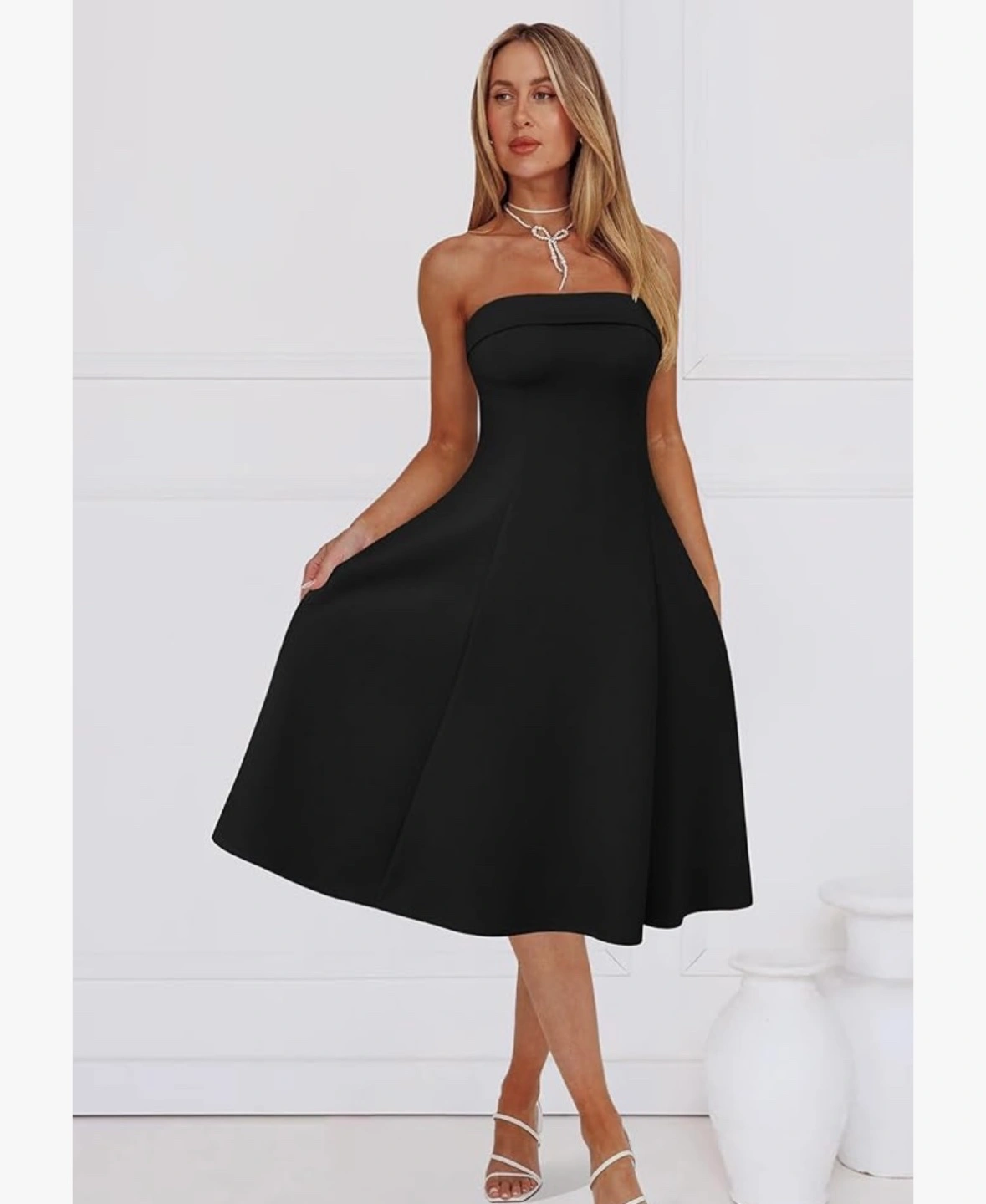 A Newshows black strapless dress in size L. It's a stylish and elegant piece that's perfect for a night out or a special occasion! The dress is in brand new and ready for a new home
