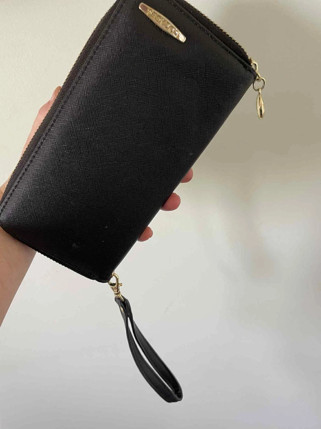 Women’s black wallet Lots of room and compartments inside for cards, cash, coins etc Detachable wrist band Light and easy to carry Good condition- hardly used $10