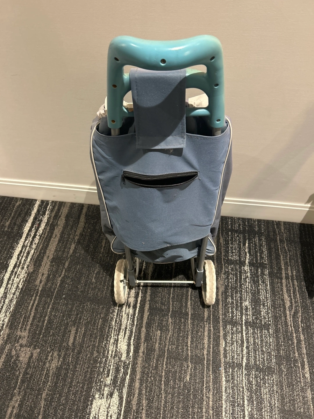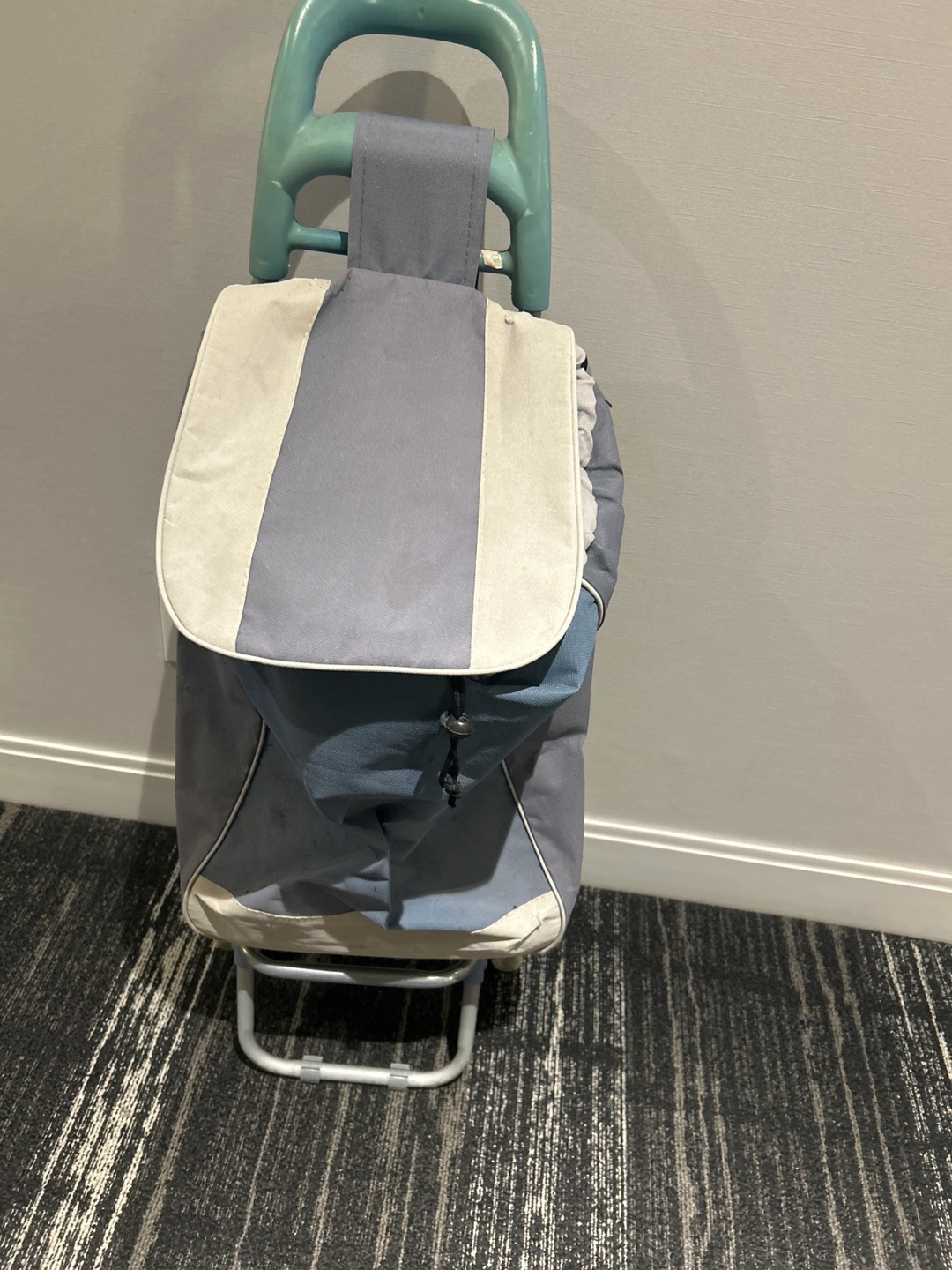 Selling a handy shopping trolley bag in blue and grey. It's perfect for carrying groceries or other items with ease. The bag is in good condition and ready for a new home!