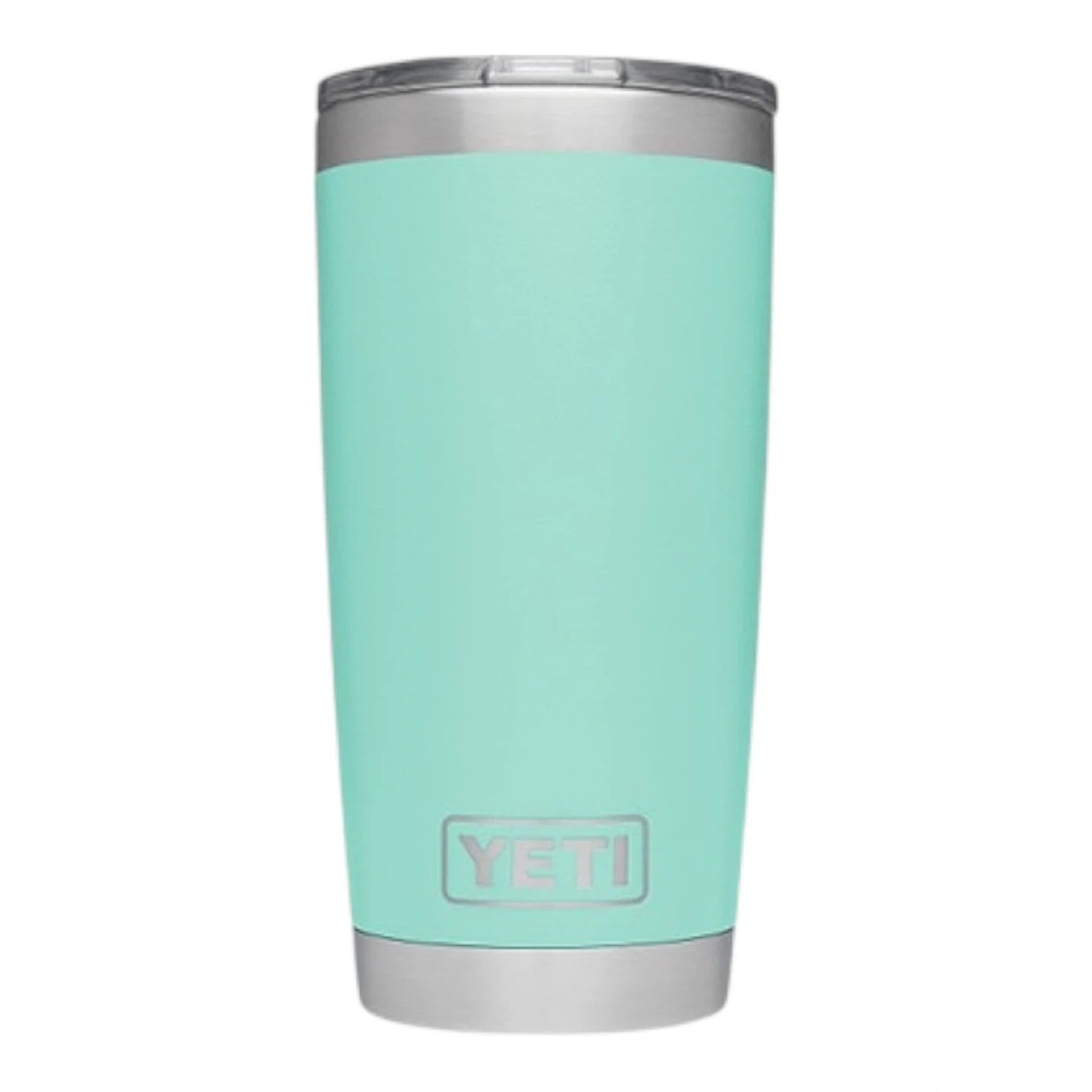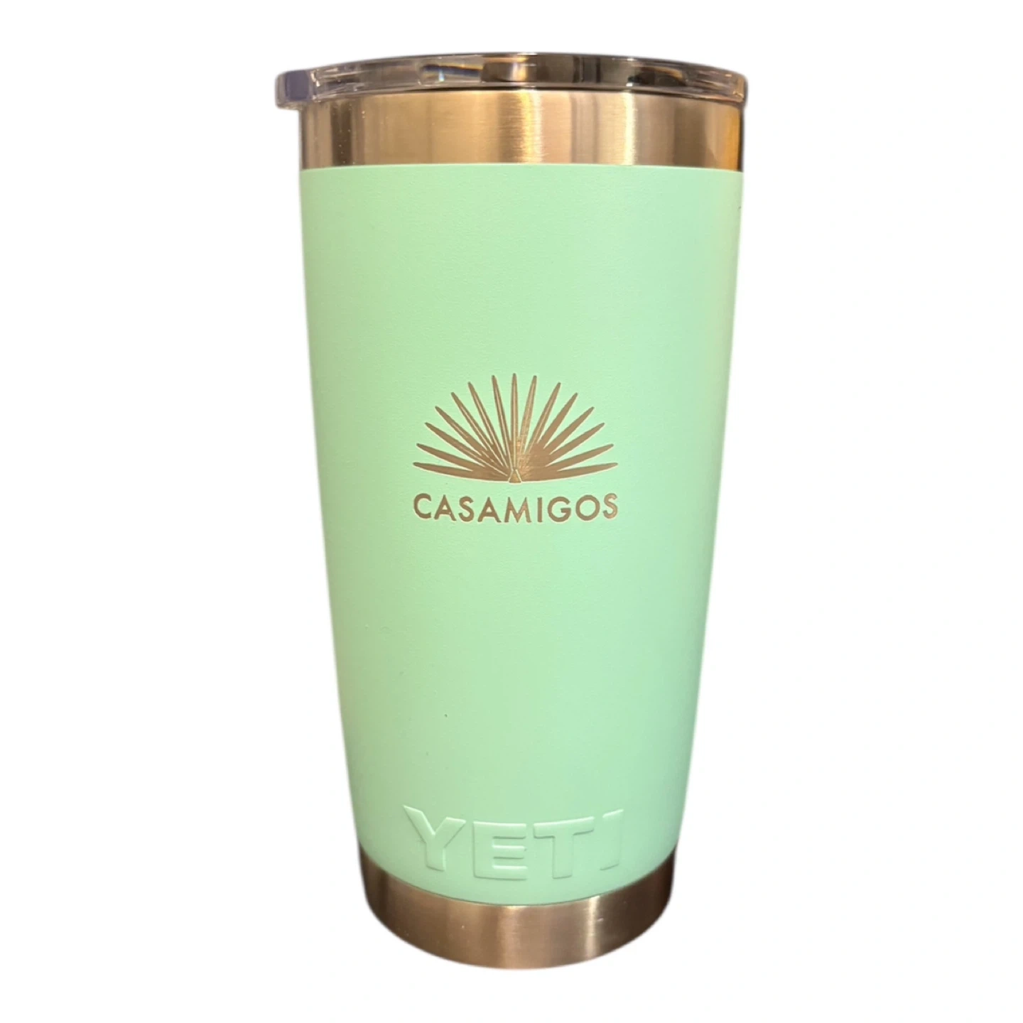 YETI Rambler Tumbler MagSlider in Seafoam 20 oz Brand new never used - there is a Casamigos logo on it, but it does include a vinyl YETI sticker if you want to cover it up. Any tumbler that's coming along for the ride needs to be tough enough to keep up. YETI's Rambler® 20 oz. is made from durable stainless steel with double-wall vacuum insulation to protect your hot or cold beverage at all costs. While the magnet on the included MagSlider™ Lid adds an additional barrier of protection for keeping drinks contained and preventing heat or cold from escaping, please note - this magnet component is not leakproof and will not prevent spills. 18/8 Stainless Steel: Made with kitchen-grade stainless steel, so they're puncture- and rust-resistant. Double-Wall Vacuum Insulation: Keeps cold drinks cold and hot drinks hot until the last sip Dishwasher Safe: Because no one needs more work to do Dimensions: Outside 6 7/8” × 3 1/2” Empty Weight 12.7 oz
