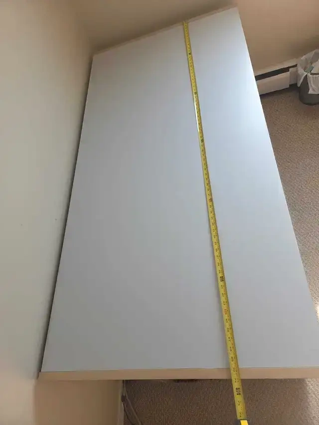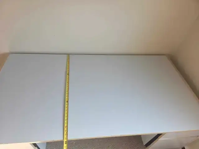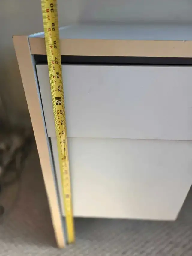 I'm selling a simple white desk with drawers, perfect for a home office or study space. As you can see from the photos, Measurements are included in the photos. It's a straightforward and practical piece. It's like finding a four-leaf clover in your backyard – a delightful surprise!
