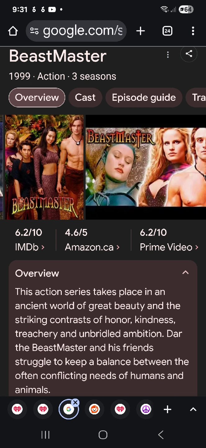 The first season of Beastmaster on DVD! This set includes 3 of the 6 discs from the first season. For fans of the show or anyone looking for a bit of nostalgic adventure
