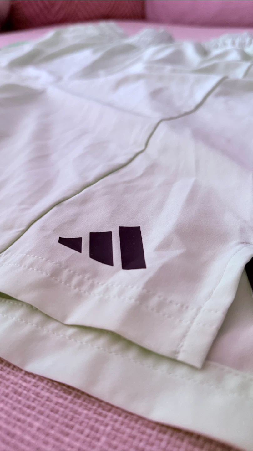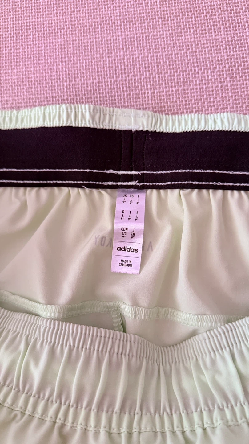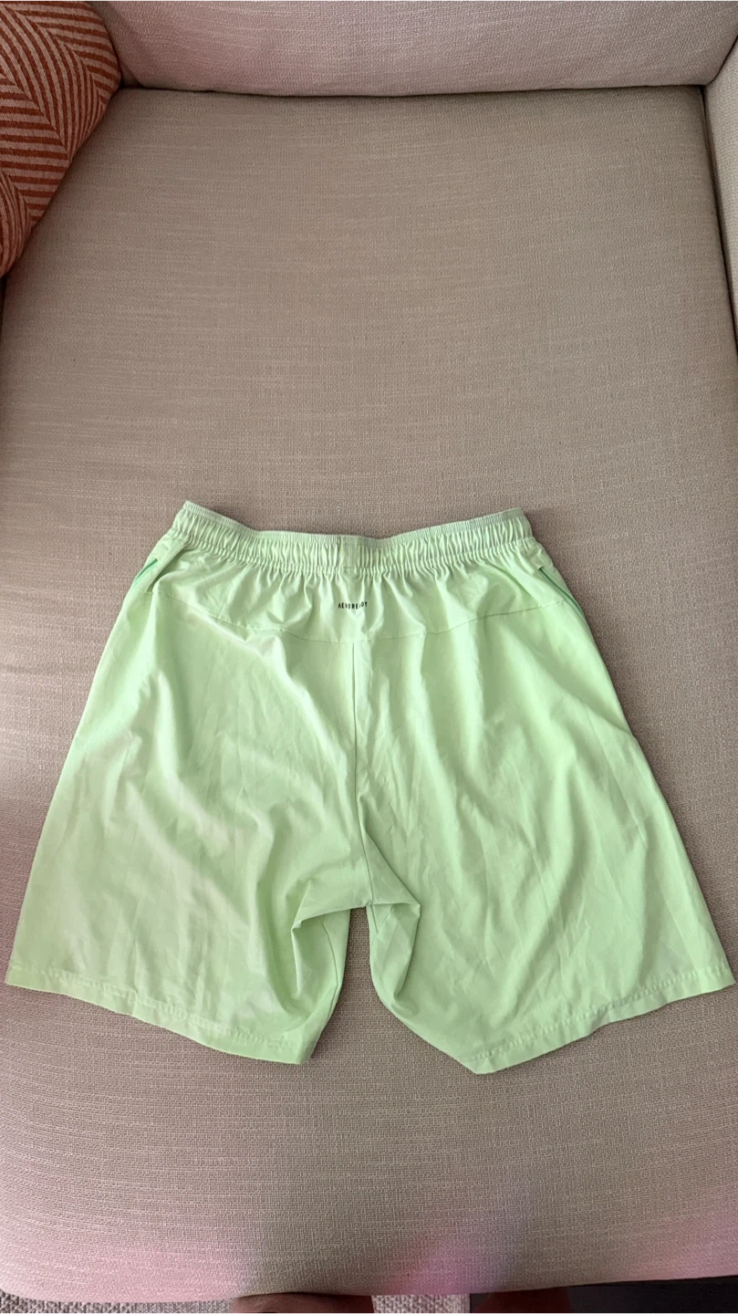 Selling a pair of Adidas running shorts in size L. The shorts are a light green colour and feature the Adidas logo on the side. They're in great condition and ready for your next run!