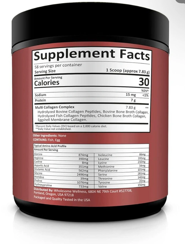 Wholesome Wellness Multi Collagen Protein Powder Hydrolyzed | (Type I II III V X) Grass-Fed All-in-One Super Bone Broth + Peptides - Premium Blend Of Beef, Chicken, Wild Fish, Eggshell, 58 Servings 16oz Exp 04/2028 For Sale By: Owner