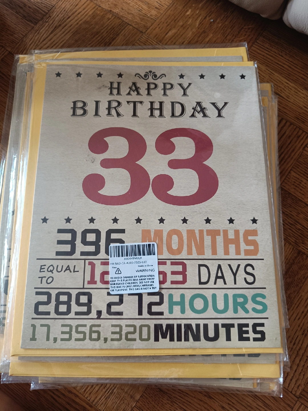 Selling a set of Happy Birthday cards, each celebrating different ages! The cards feature a unique design that counts down the birthday in months, days, hours, and minutes. Perfect for adding a special touch to someone's birthday celebration 1 for $1 3 for $2 5 for $3 10 for $5