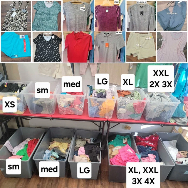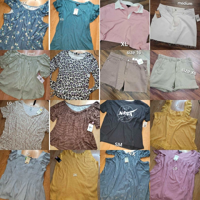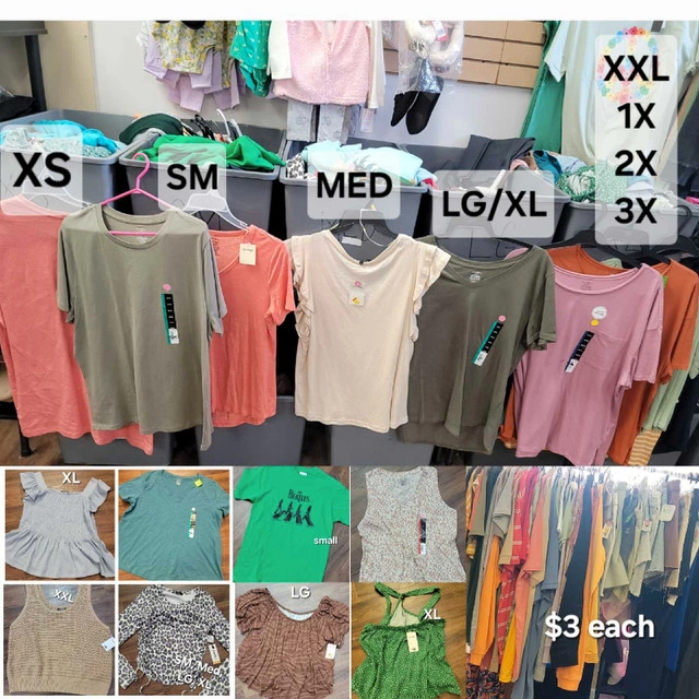 Dive into a treasure trove of women's tops, all priced at just $3 each! This is a fantastic opportunity to refresh your wardrobe with a variety of styles and sizes to fit your unique taste. Whether you're looking for casual tees, stylish blouses, or something in between, you'll find an array of options to choose from. These items are used, and range in condition. Please review carefully before purchasing. If you're seeing this ad, the items are still available! So why wait? Come and discover your next favourite top today!
