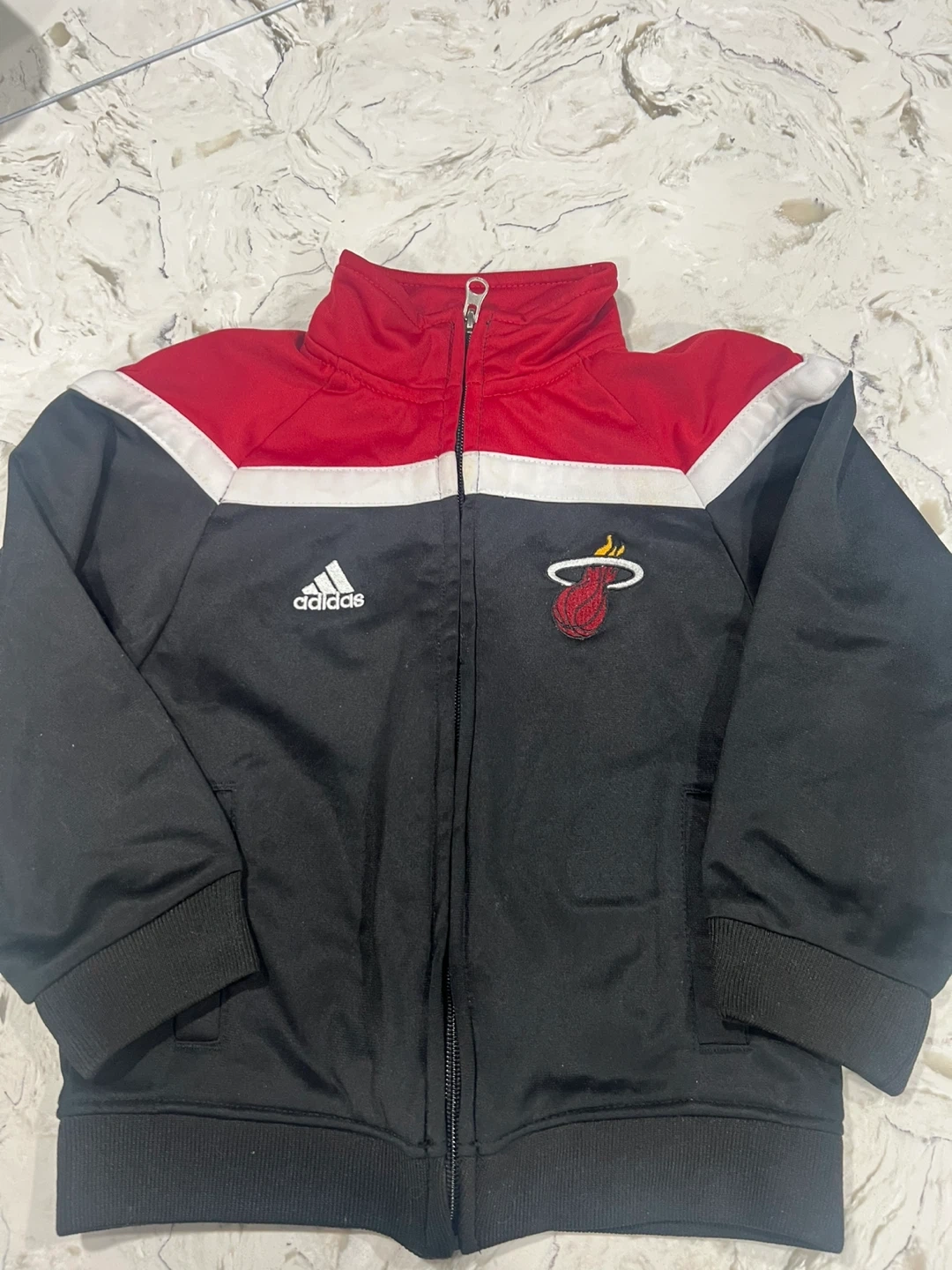Selling an Adidas Miami Heat jacket in size 4T. It's in great condition and perfect for your little basketball fan! The jacket features the Miami Heat logo and Adidas branding. It's a stylish and comfortable jacket for everyday wear