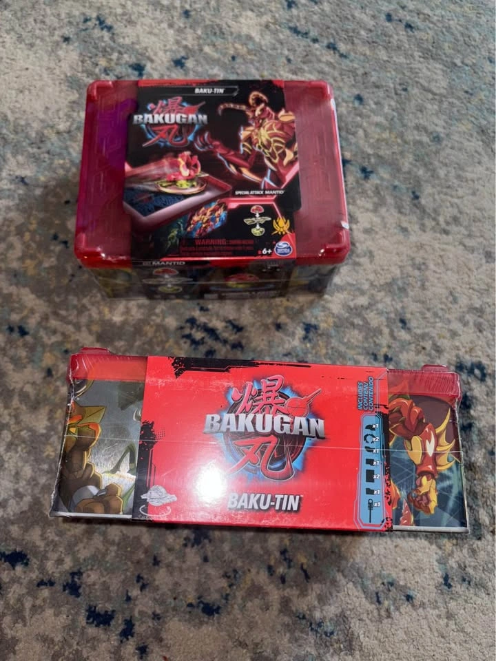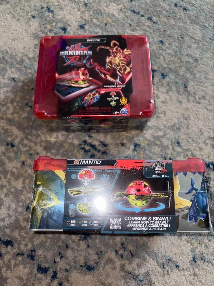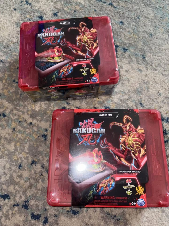 Brand new Bakugan Baku-tin with Special Attack Mantid, Customizable, Spinning Action Figure and Toy Storage, Kids Toys for Boys and Girls 6+ $10 each. Price is firm.