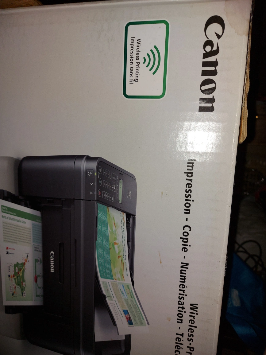 Selling a Canon wireless printer. It's in good working condition and ready for a new home. Perfect for printing documents and photos wirelessly!
