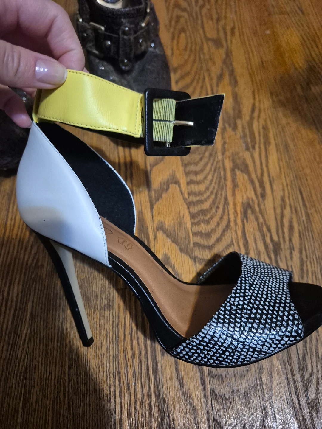 Selling a pair of Aldo heels in size 8. They feature a stylish black and white design. Perfect for dressing up any outfit!