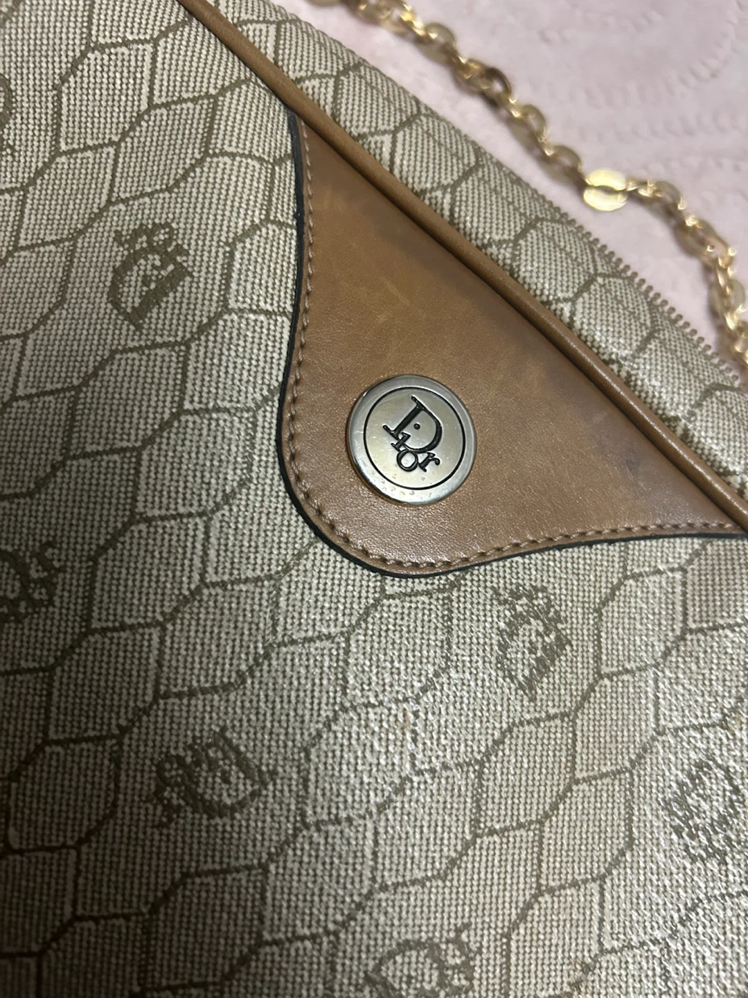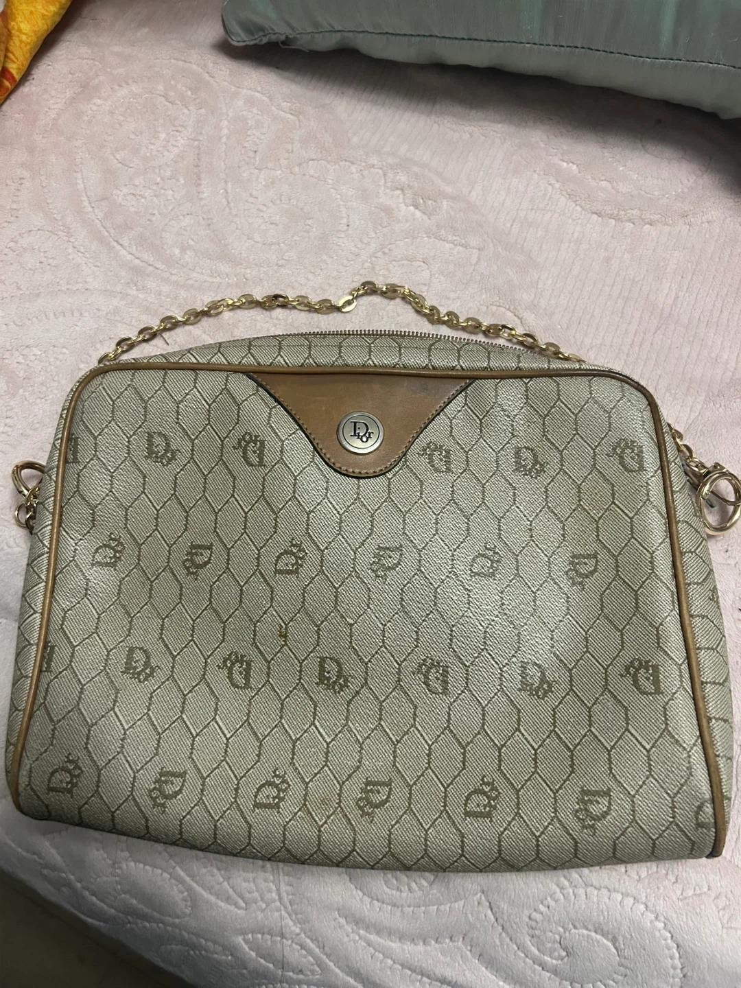 Selling a Dior shoulder bag. It has a unique pattern and a gold chain. It's in good condition and ready for a new home! authentic! Bought it for 400