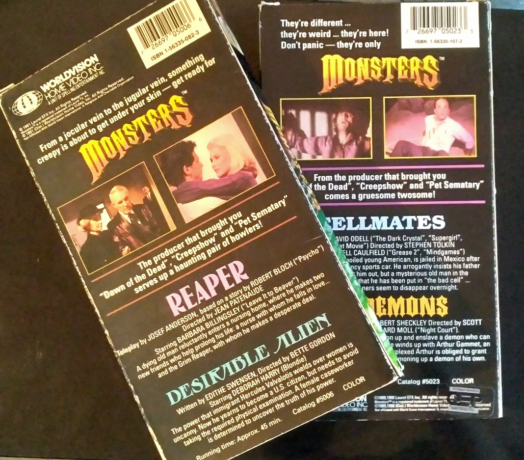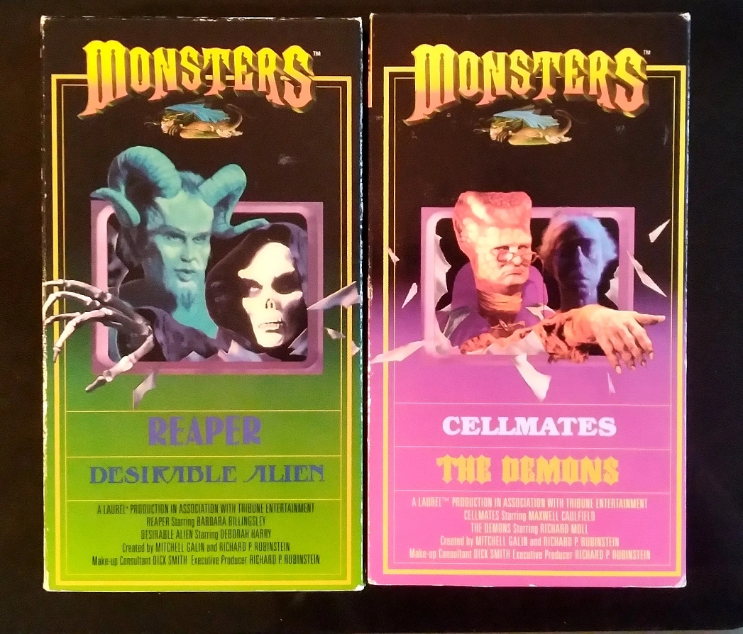RARE LOT OF TWO 'MONSTERS' TV SERES VHS CASSETTE TAPES IN GREAT CONDITION. EACH TAPE IS A DOUBLE FEATURE OF EPISODES FROM 1989/90 TAPE ONE - MONSTERS: REAPER / DESIRABLE ALIEN TAPE TWO - MONSTERS: CELLMATES / THE DEMONS (TWO TAPES, EACH WITH TWO EPISODES) TAPES AND BOXES ARE IN GREAT CONDITION. BOXES HAVE VERY MINOR SHELF WEAR. TAPES MAY NOT BE REWOUND. VIEWED WITHOUT ISSUE ON A LATE MODEL, FUNCTIONING HITACHI VCR, BUT NOT TESTED RECENTLY. CASH AND PICK-UP ONLY. QUEEN ST EAST AND BROADVIEW. RIVERSIDE.