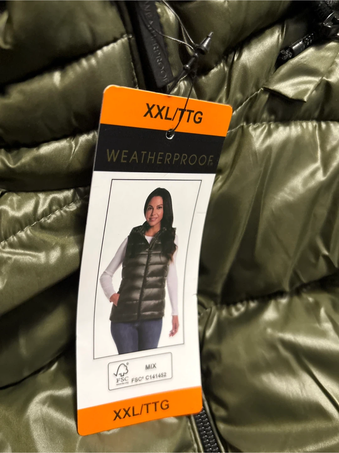 Selling a brand new Weatherproof puffer vest in size XXL/TTG. The vest is a stylish olive green colour. Perfect for layering!