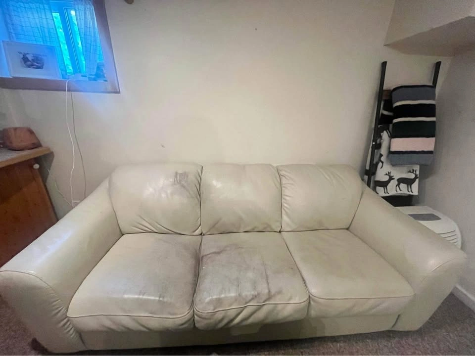 Looking for a comfy project piece or an extra couch for the basement, garage, or cottage? This cream-colored leather loveseat has lots of life left but does show wear and tear (see photos for condition). ✅ Seats 2–3 comfortably ✅ Sturdy frame and cushions ✅ Leather – can be cleaned, covered, or re-dyed Price: open to offers – just need it gone! Pickup only – located near Rona on Barton/Woodward.