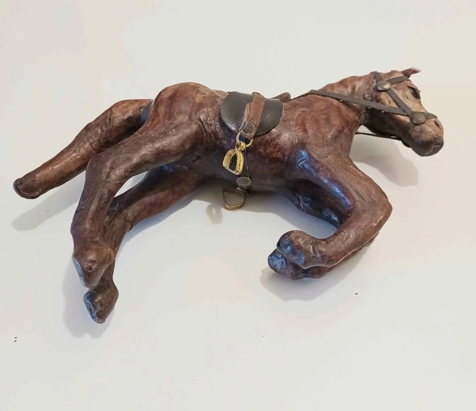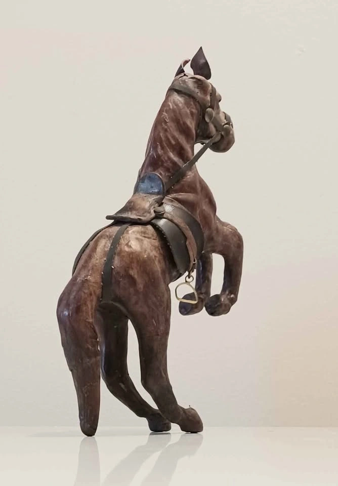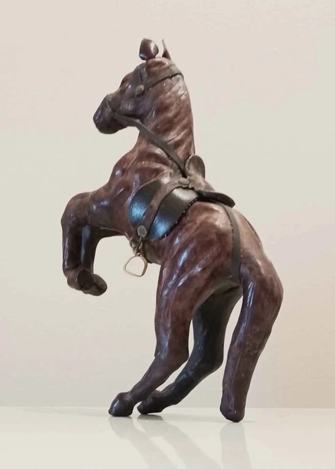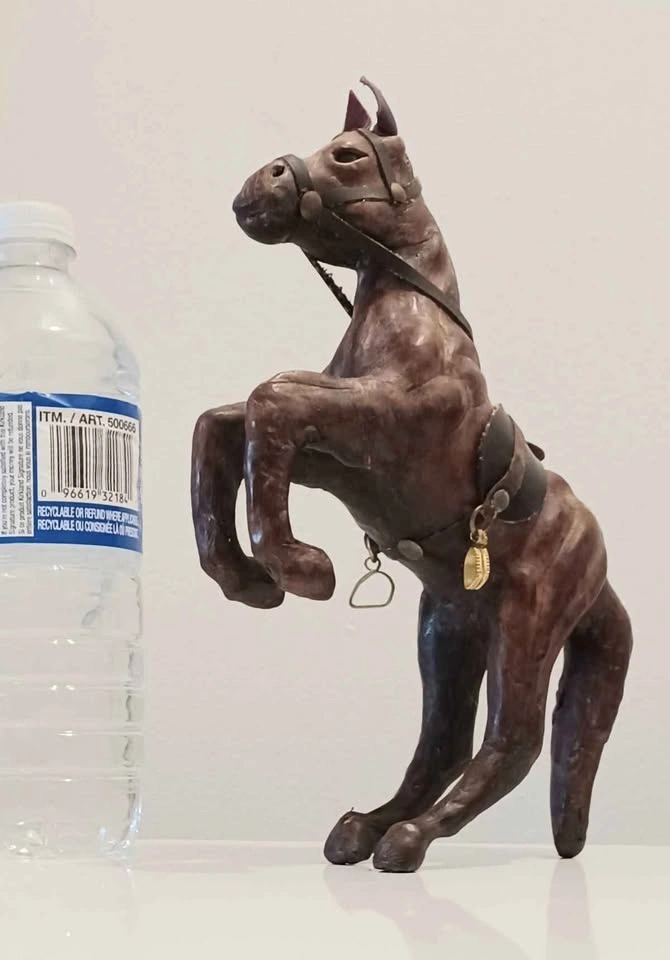 Vintage Mid Century, Handmade Leather Wrapped Prancing Horse Figurine. Collectible , Decorative , Household. Rearing or Prancing Horses, Symbolizing Power and Freedom. Water Bottle For Size Reference. Please check out my other posts!