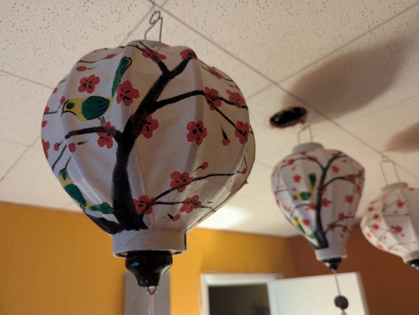 These are some decorative hanging paper lanterns. They would be great for adding a bit of flair to a room or party. They are in good condition and ready to hang