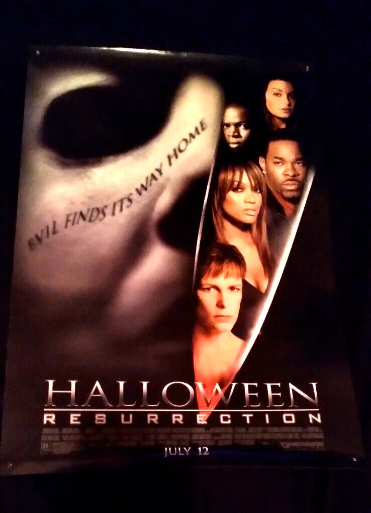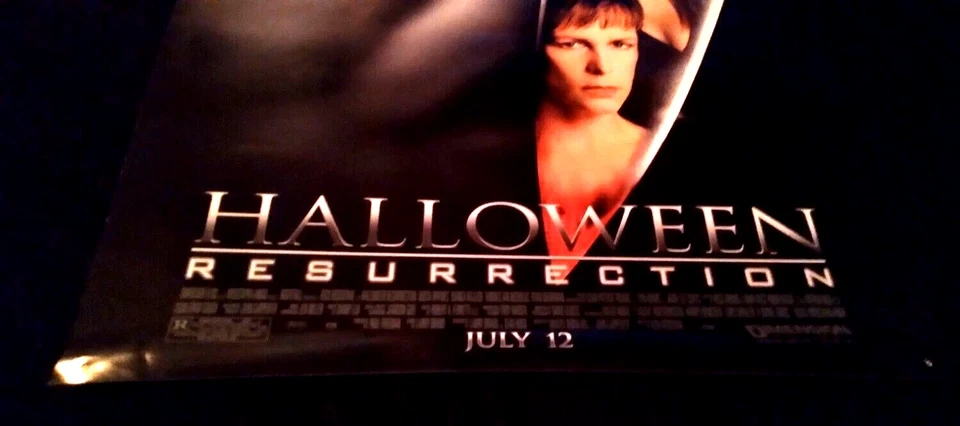 HORROR POSTER - HALLOWEEN: RESURRECTION SINGLE-SIDED. ROLLED. APPROXIMATELY 13.5x20 INCHES. PREVIOUSLY DISPLAYED W/ 4x PIN HOLES IN EACH CORNER. VERY MINOR LIGHT CREASE AT BOTTOM LEFT. LOOKS GREAT! CASH AND PICK-UP ONLY. QUEEN ST EAST AND BROADVIEW. RIVERSIDE.