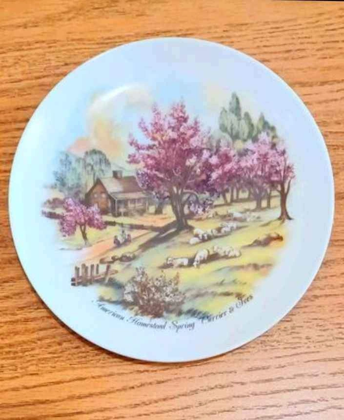 Vintage pair of Currier and Ives porcelain collectible Spring and Summer wall plates. Diameter: 16 cm. Excellent condition. No chips or cracks Please check out my other rare items!