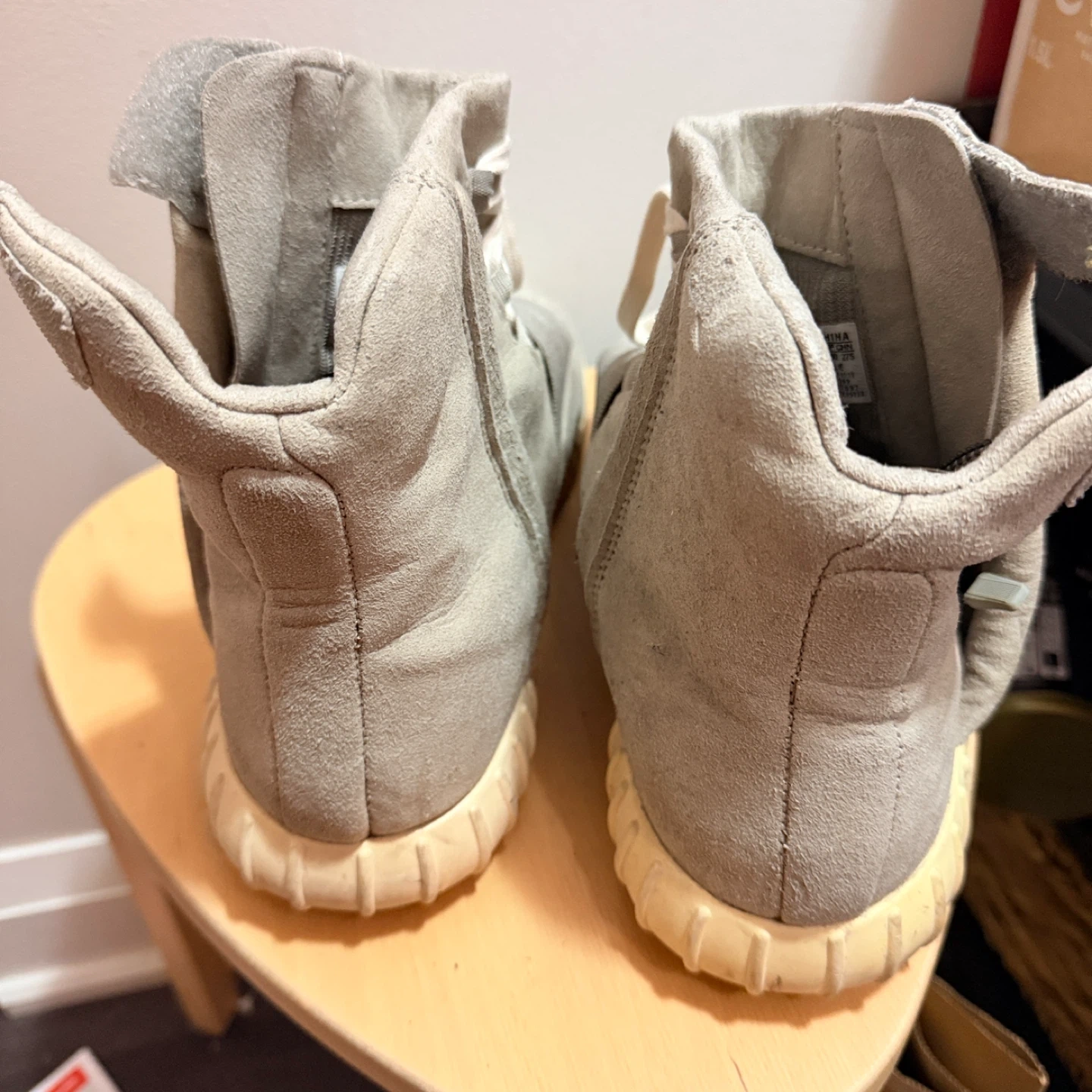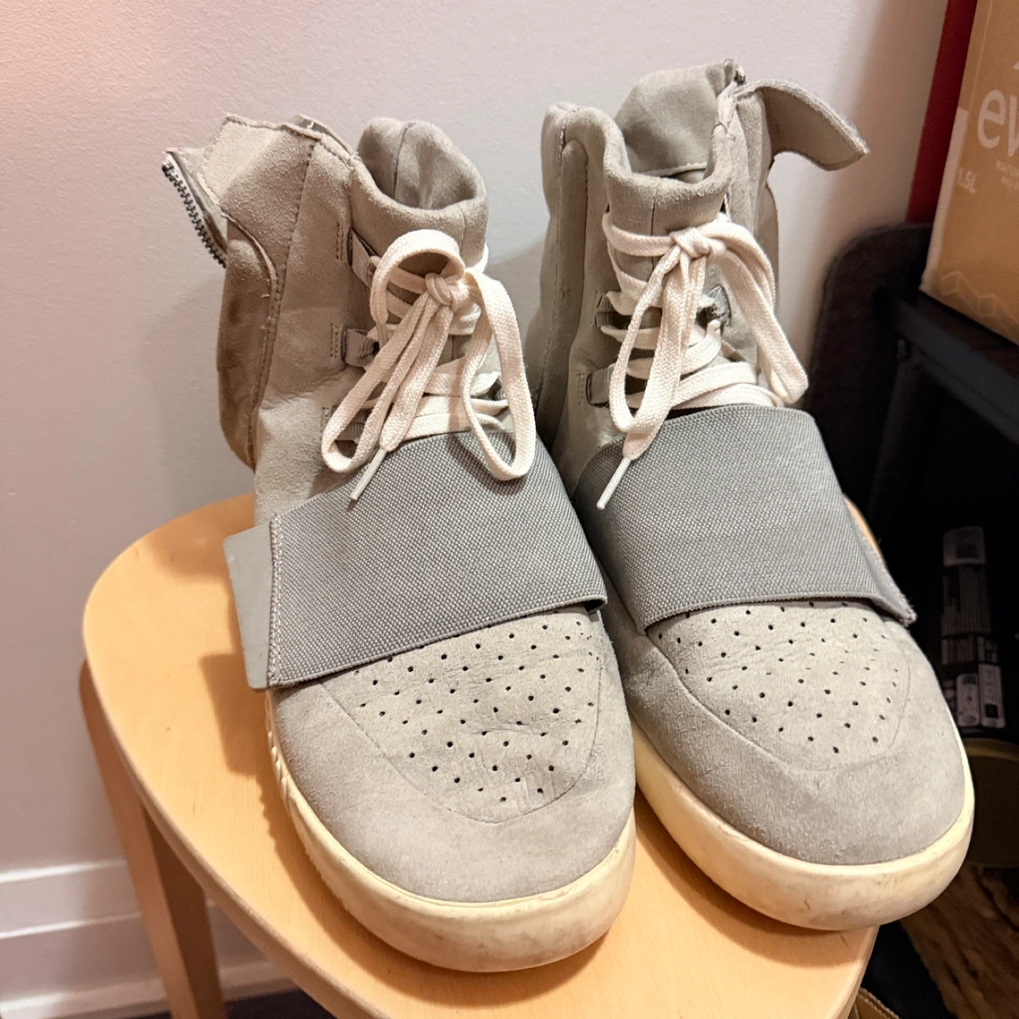 These are a US size 10 and in good condition. They feature a unique high-top design with a zipper on the side.