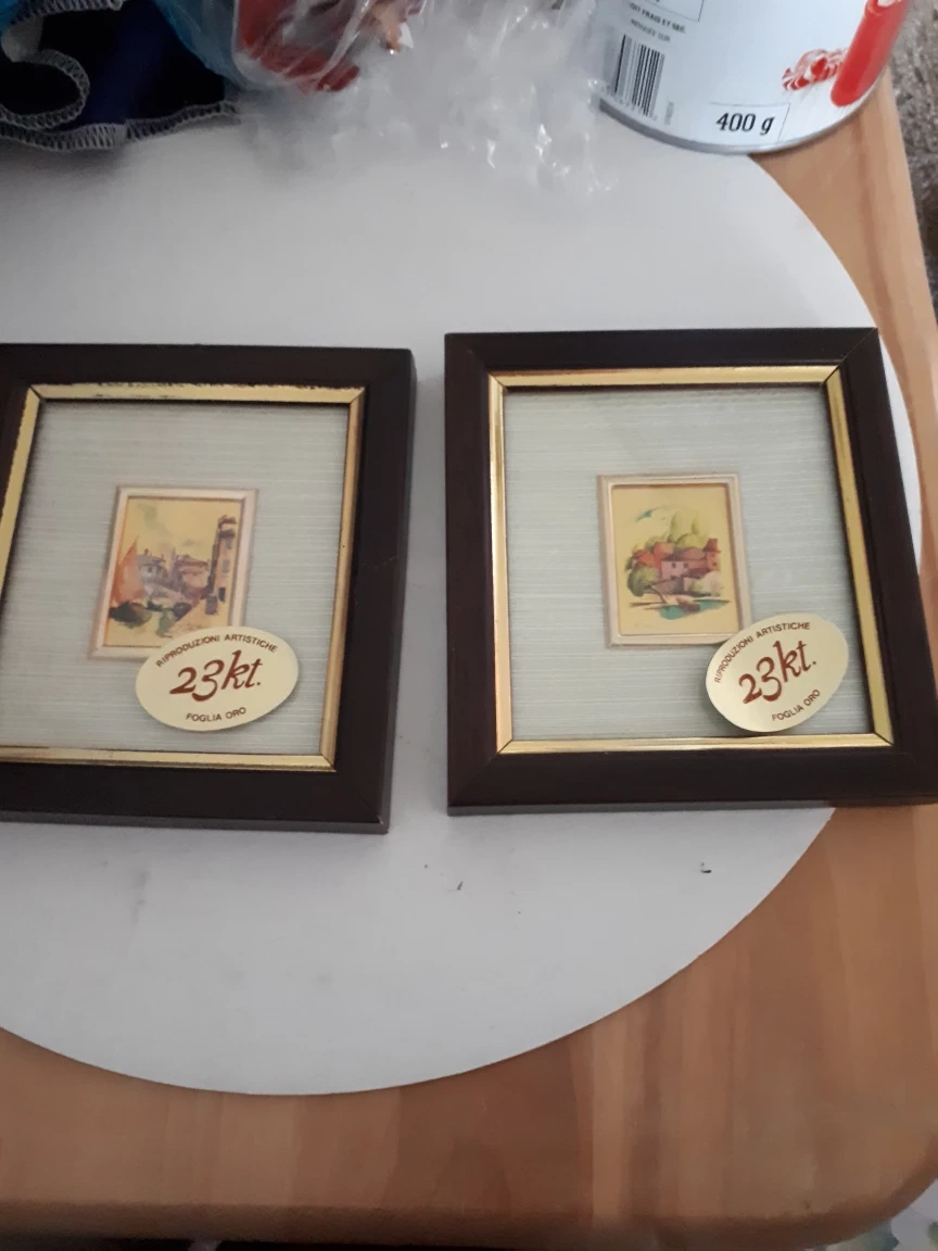 Two framed art pieces featuring 23kt gold leaf details. They add a touch of elegance to any space