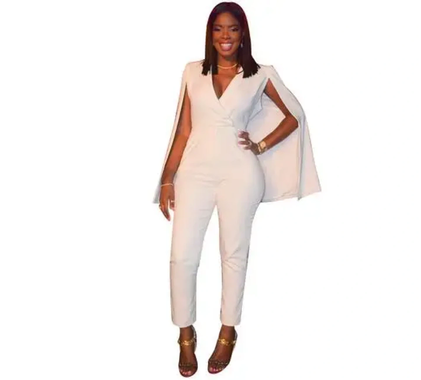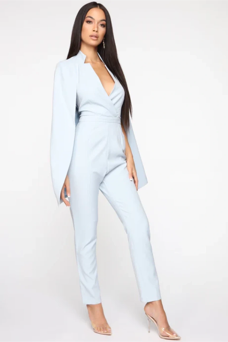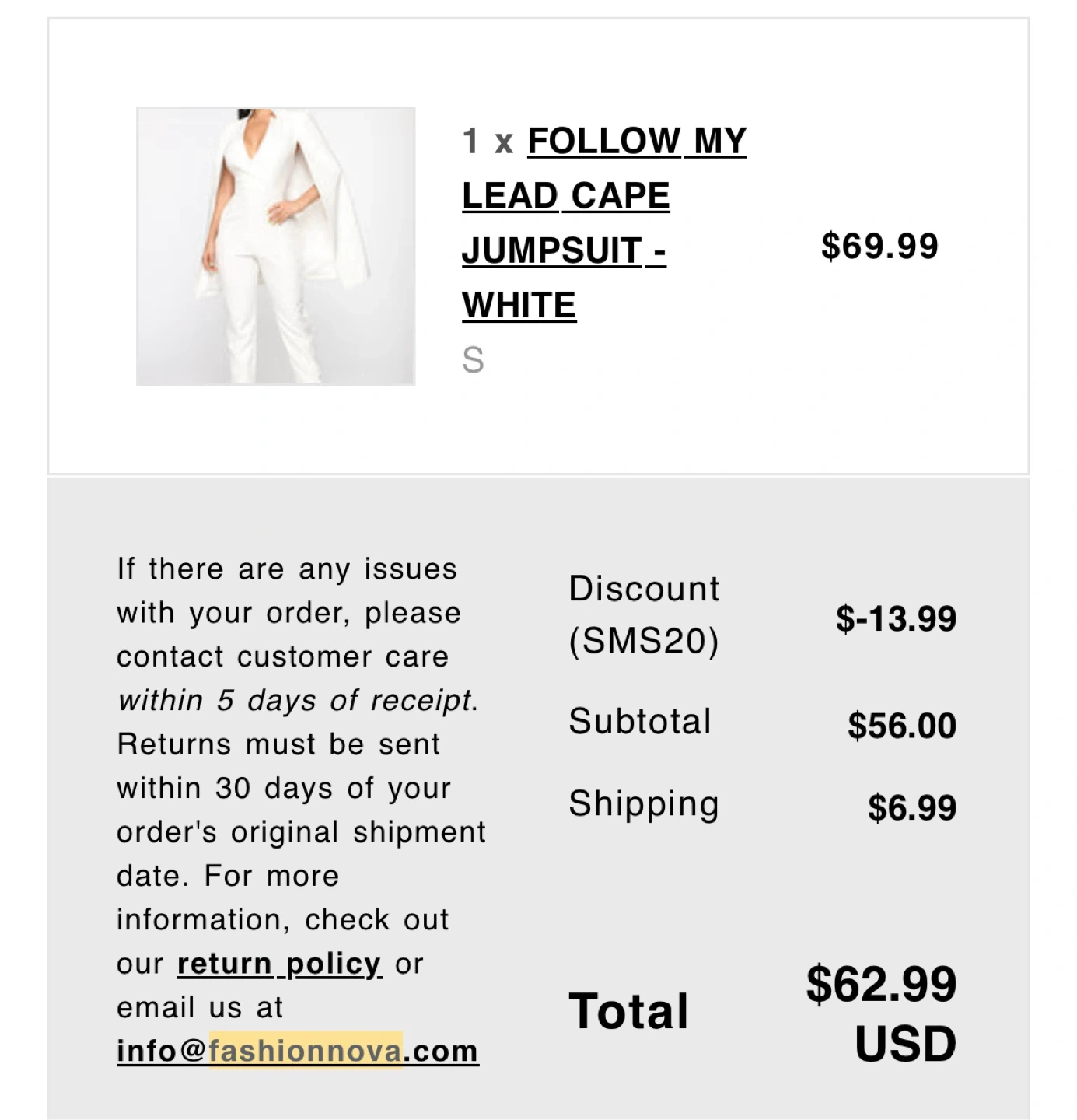 Selling a Fashion Nova Follow My Lead Cape Jumpsuit in white, size S. The original price was $69.99 USD.