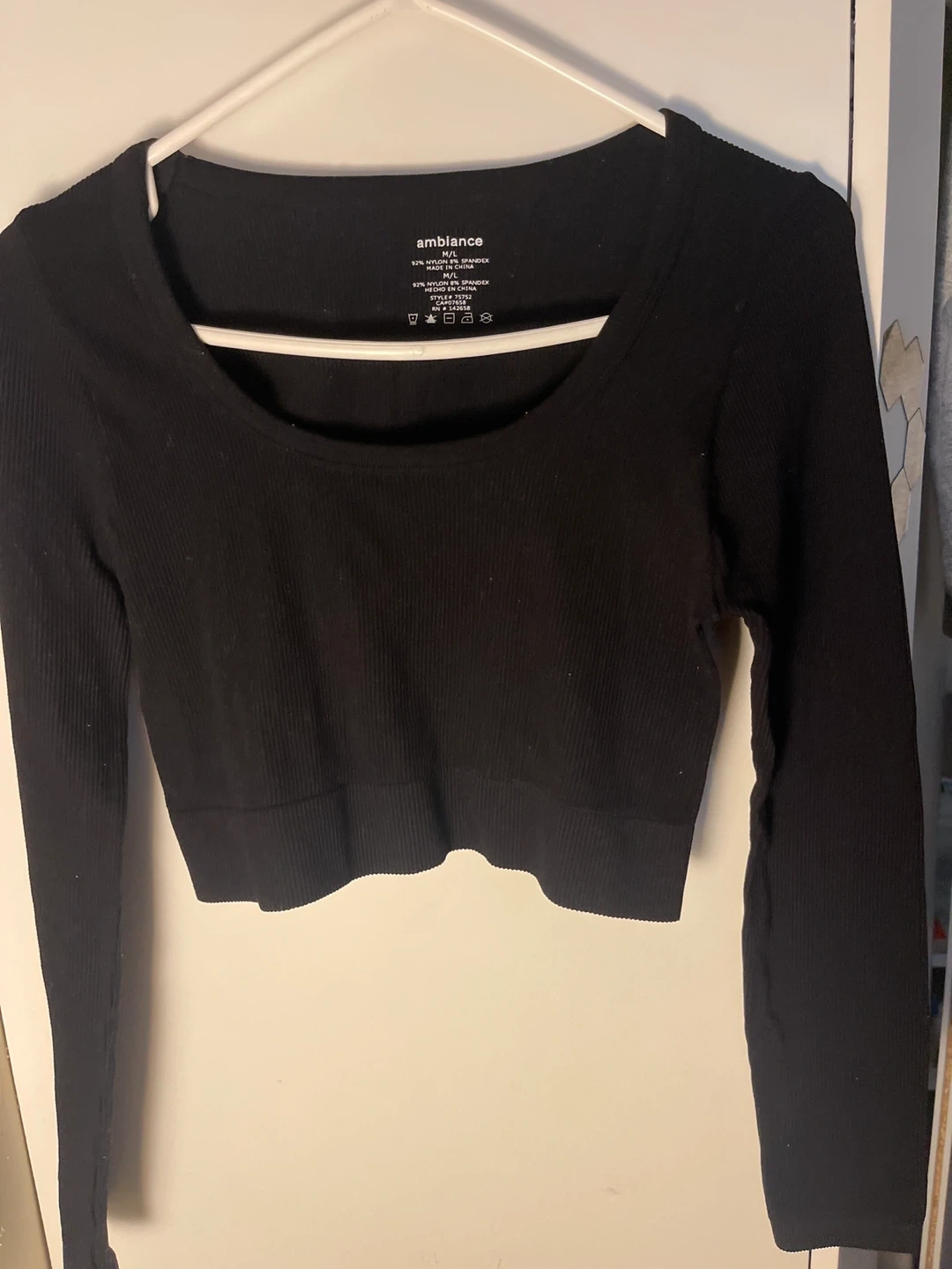 NEED GONE ASAP ‼️ ONLY WORN TWICE Selling a cute black crop top from Ambiance! It's a size M/L and made of 92% nylon and 8% spandex. It's in great condition and ready for a new home!