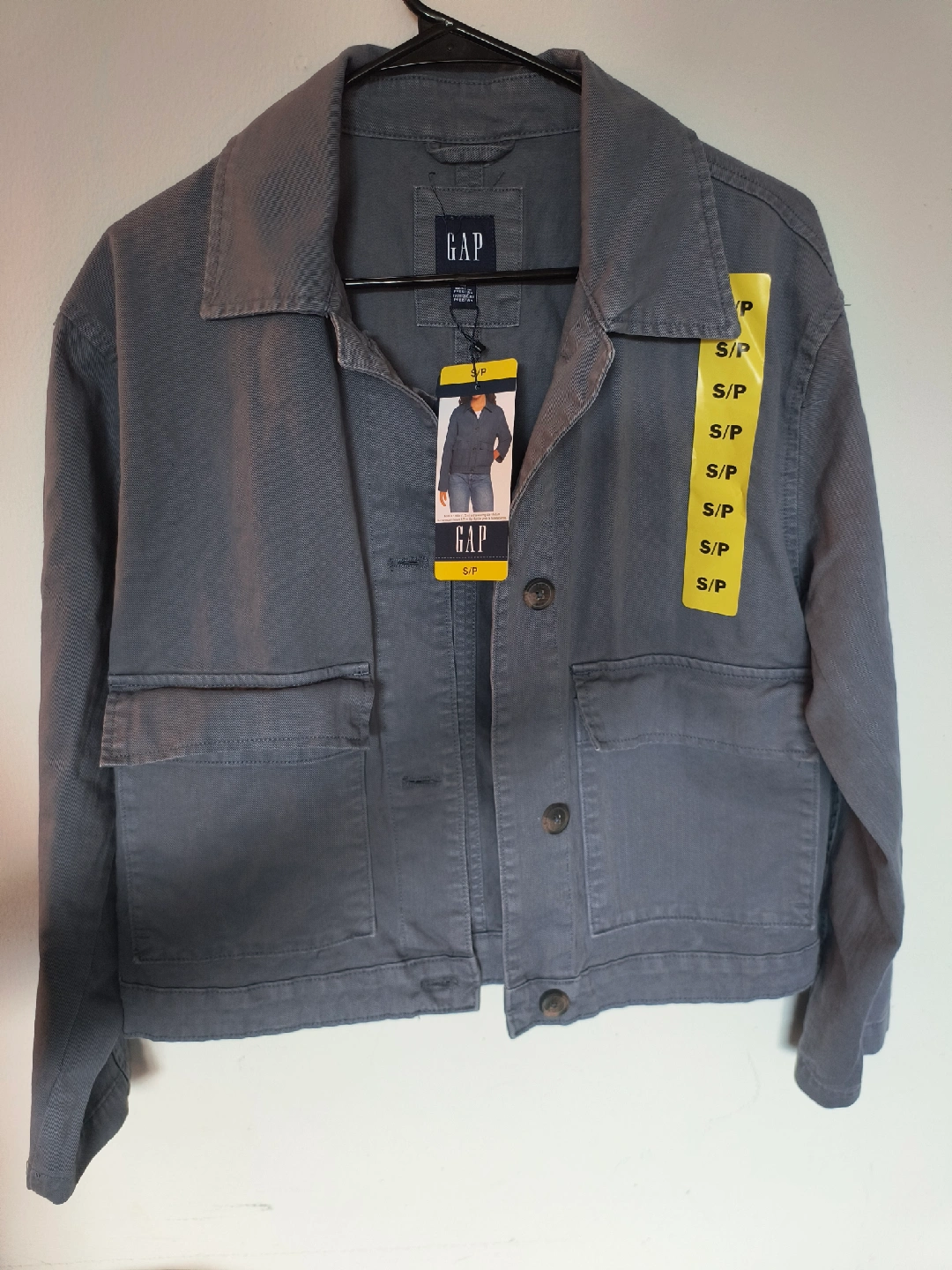 Selling a brand new GAP jacket, still with the original tags! It's a stylish grey colour and size S/P. Never worn. New