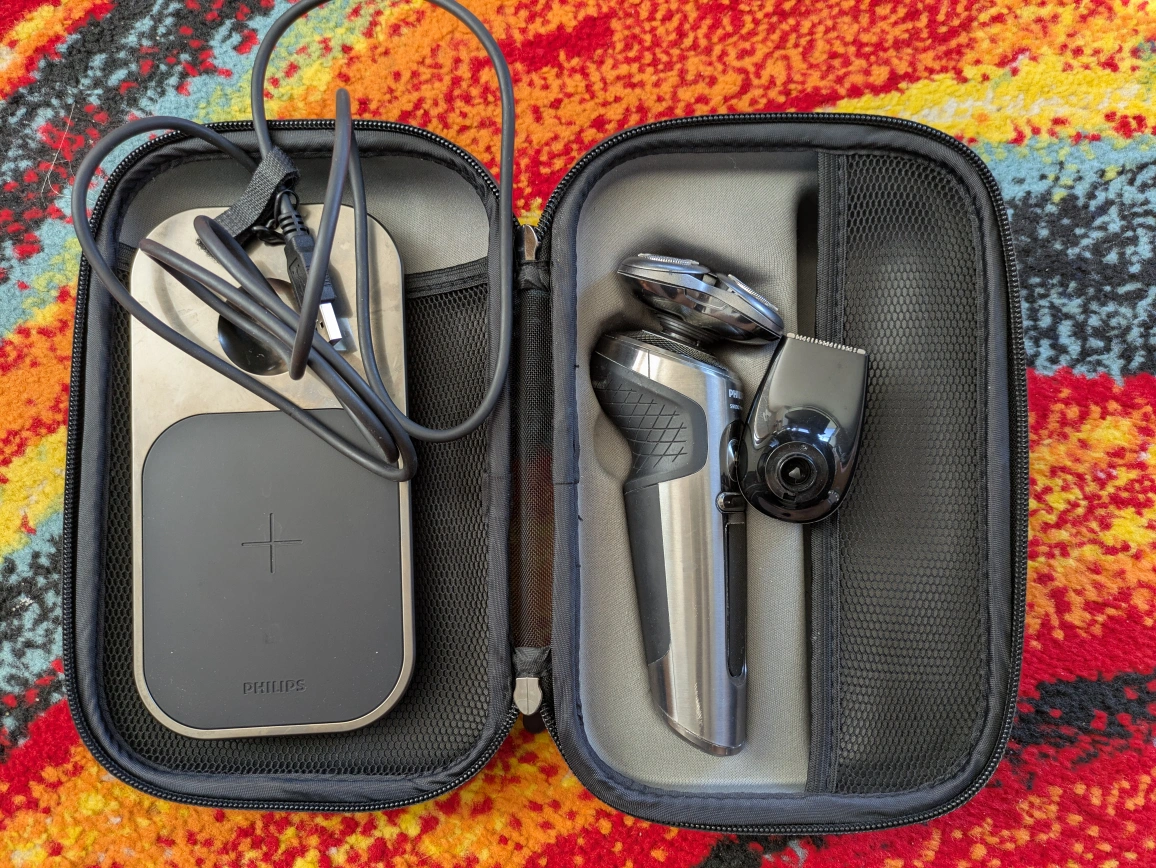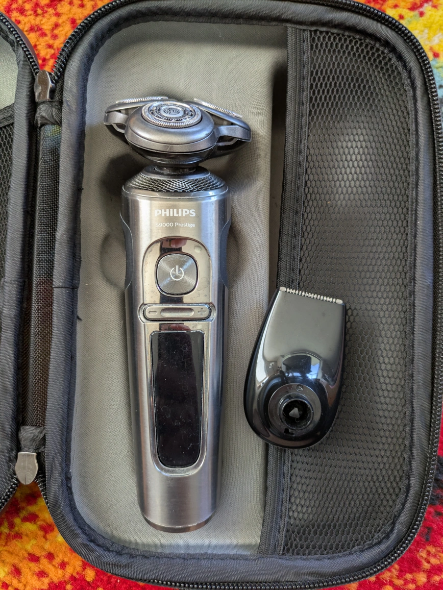 Selling a Philips S9000 Prestige electric shaver. It's in good condition with used blades and comes with all original components and the box. Features include: - Ultimate closeness & skin comfort, even on a 7-day beard - Nanotech precision blades - BeardAdapt sensor - Superb SkinComfort rings - Wireless Qi charging pad included